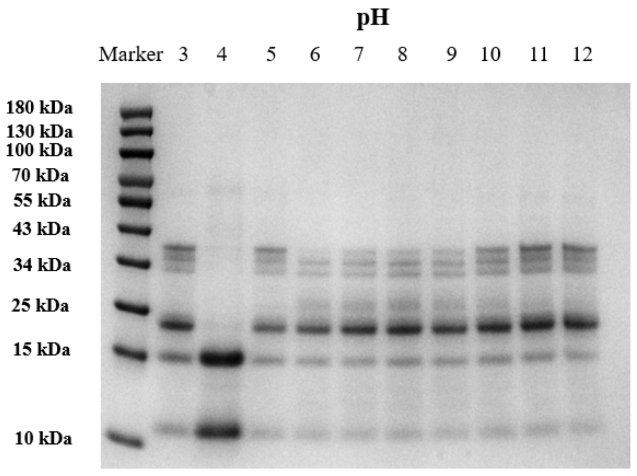 2.4. Sodium Dodecyl Sulfate-Polyacrylamide Gel Electrophoresis (SDS-PAGE)