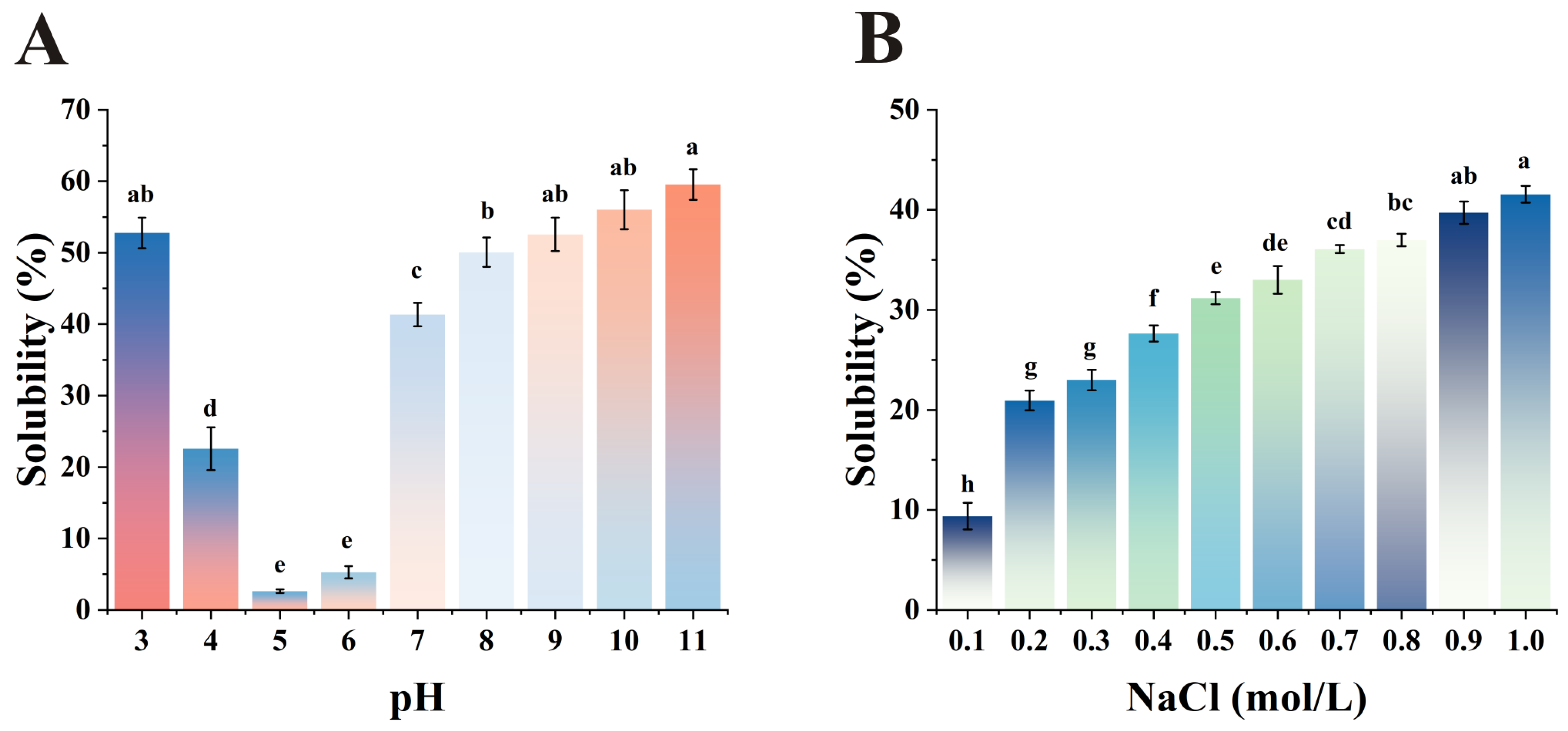 APA StyleYang, Y., Bai, Y., Xie, X., Li, B., Luo, L., Zhang, Q., Luo, C., Nie, W., Qin, R., Liu, H., Liu, J., & He, H. (2026). Physicochemical Properties of Safflower (Carthamus tinctorius L.) Seed Meal Protein and the Effects of pH and Ionic Strength on Its Functional Characteristics. Foods, 15(3), 593. https://doi.org/10.3390/foods15030593