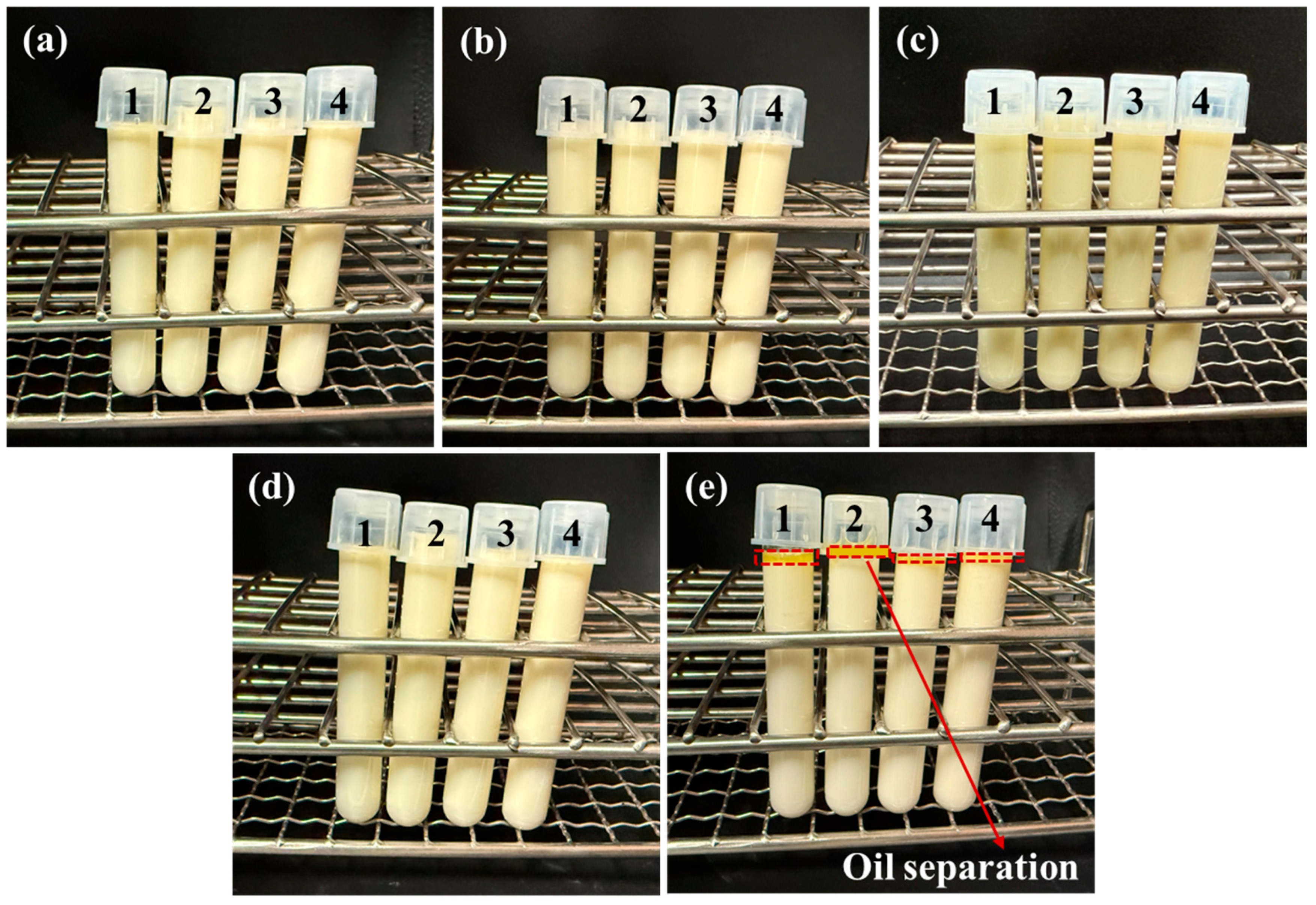 2.7. Preparation of Oil in Water Emulsions