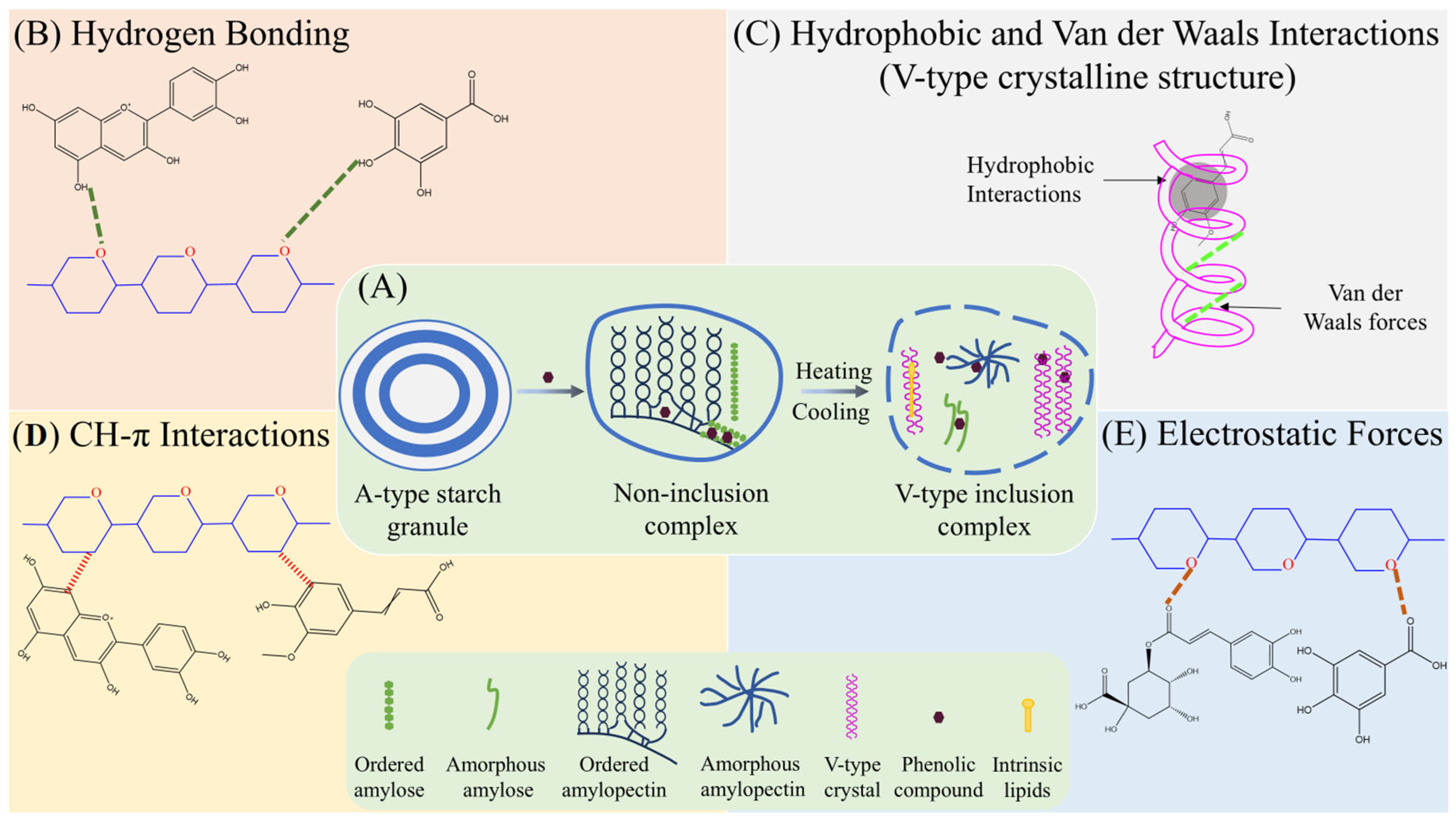 4.1. Starch–Phenolic Interactions