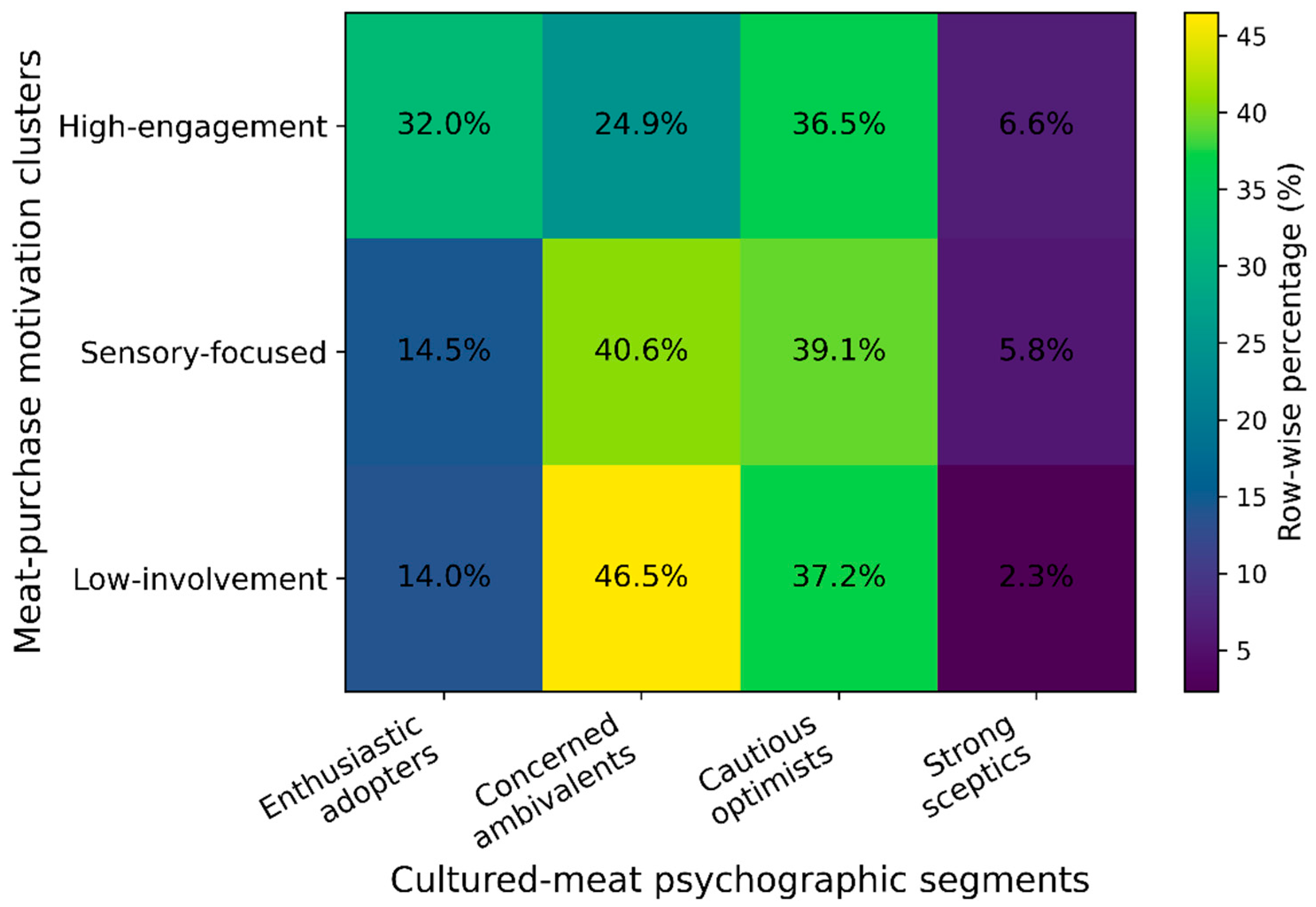 3.4.4. Overlap Between Meat-Purchase Motivation Clusters and Cultured-Meat Psychographic Segments