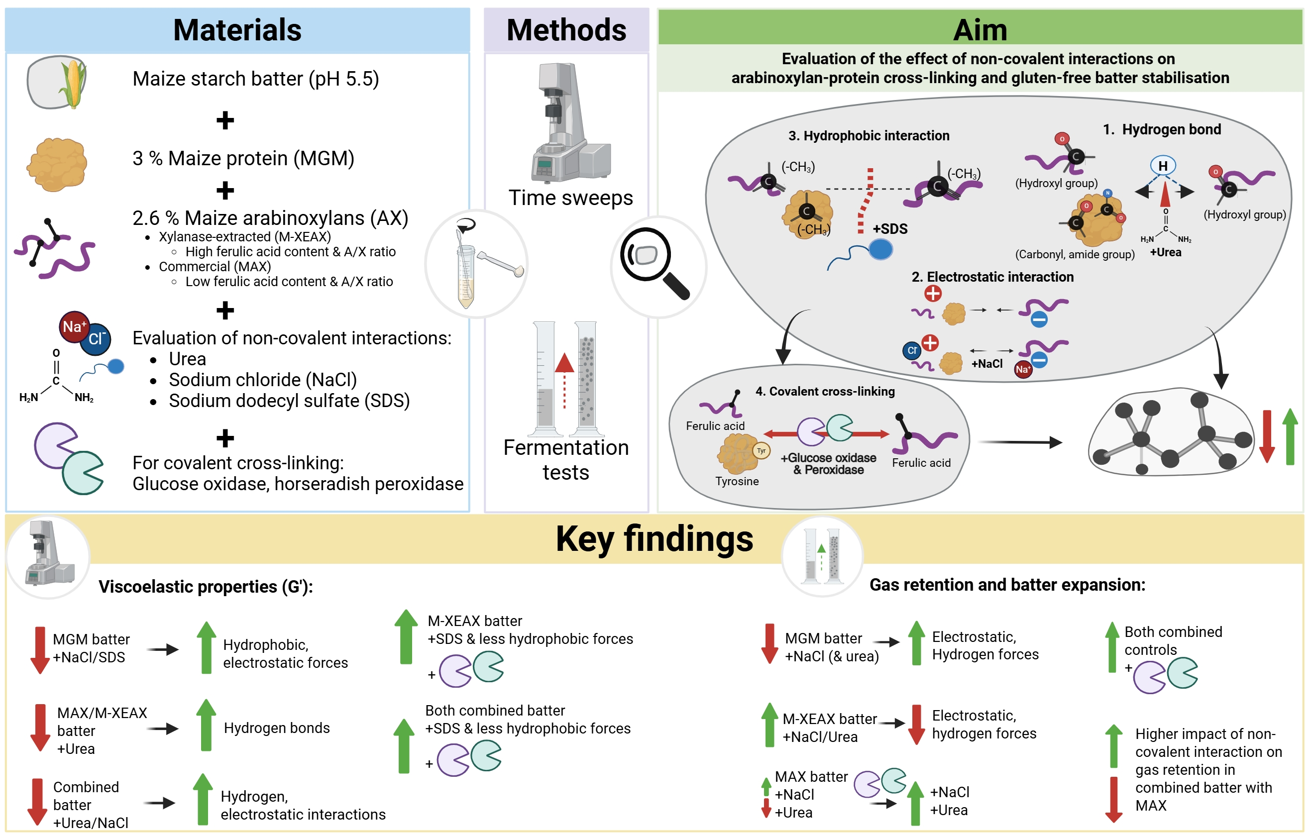 Effect of Non-Covalent Interactions on Arabinoxylan–Protein Cross-Linking and Gluten-Free Batter Stability