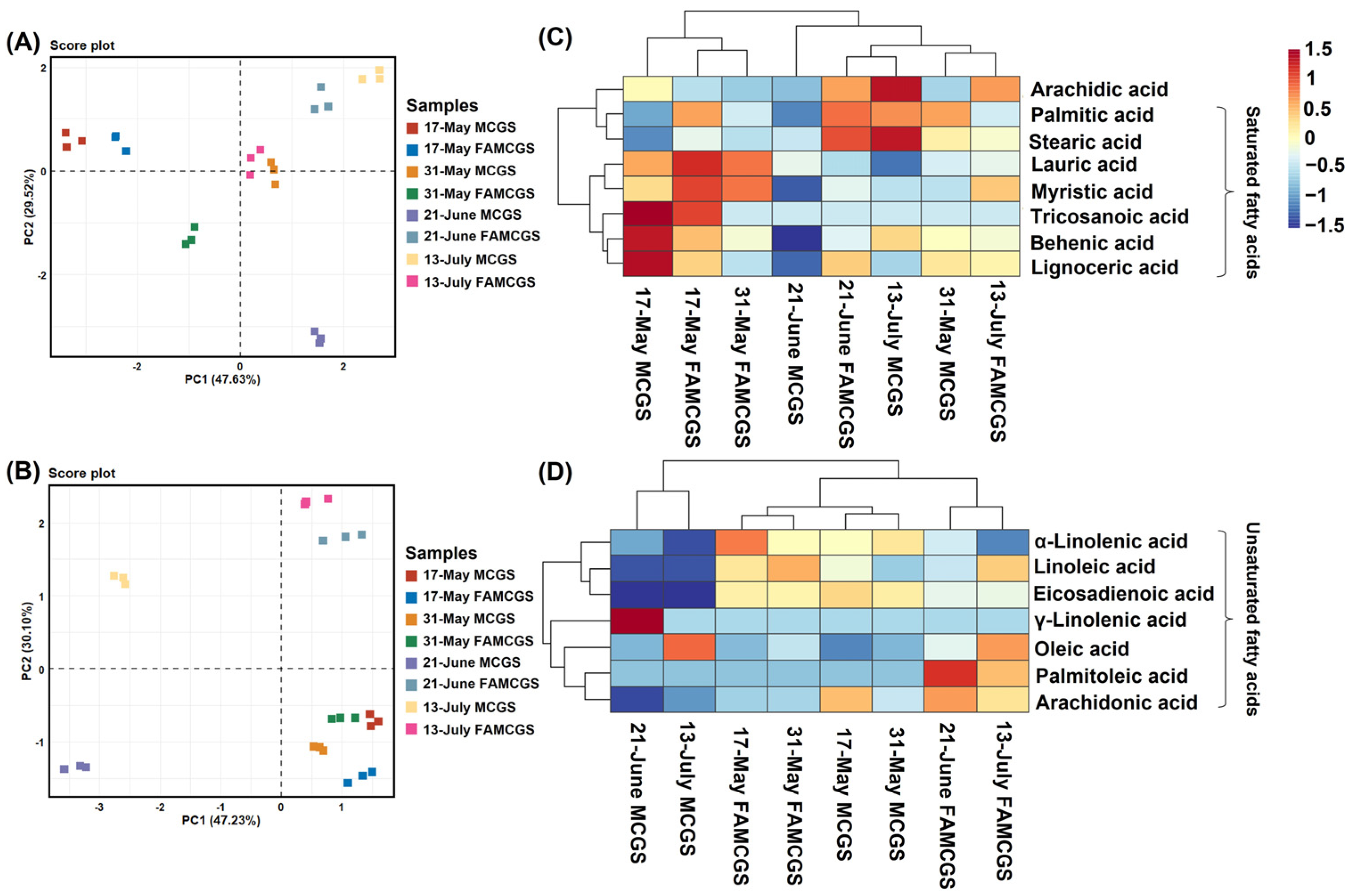 3.2. Comparison of Fatty Acid Profiles of MCGS Before and After Fermentation According to Harvest Periods