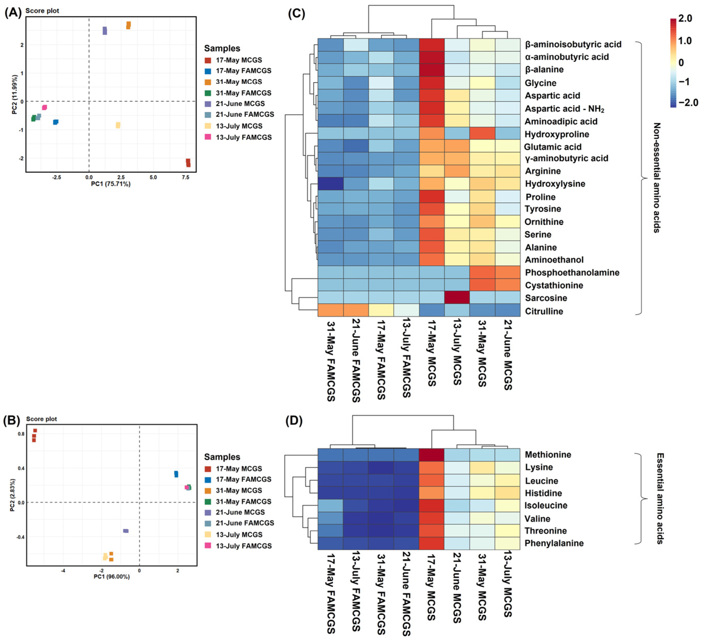 3.3. Comparison of Free Amino Acid Profiles of MCGS Before and After Fermentation According to Harvest Periods