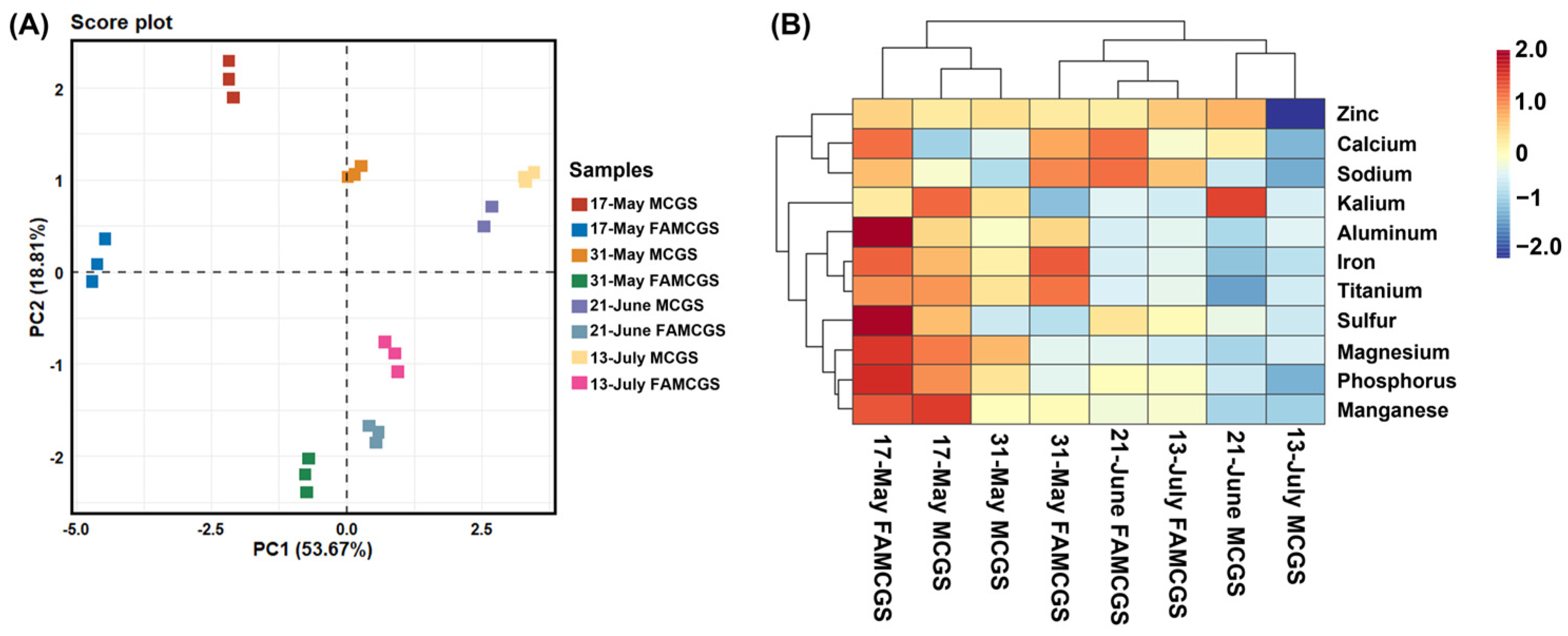 3.4. Comparison of Mineral Compositions of MCGS Before and After Fermentation According to Harvest Periods