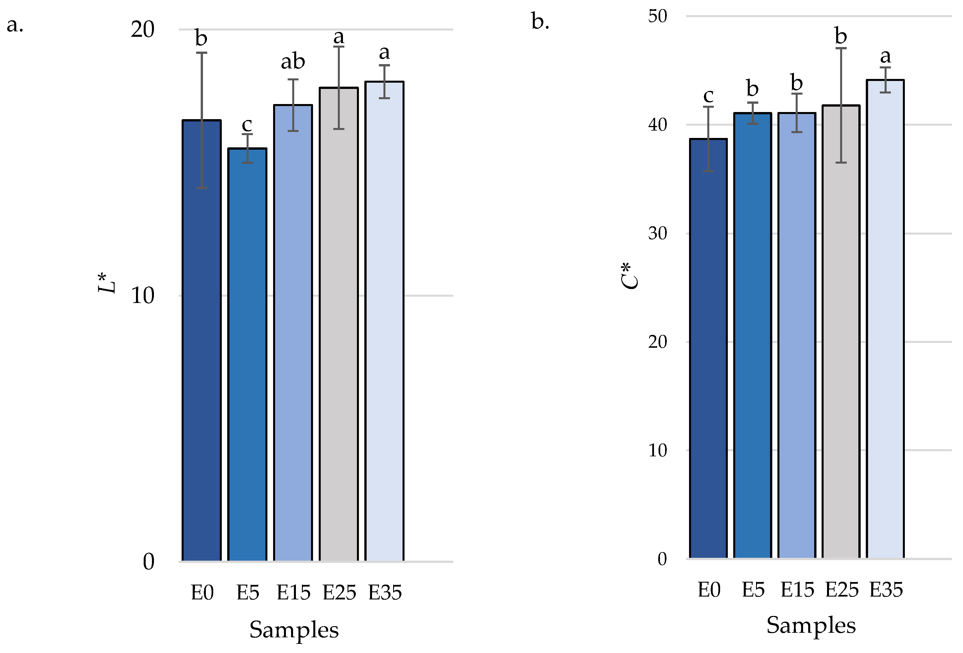 | Chromaticity (C*) | 19.10 ± 0.92 * | 15.84 ± 0.68 |