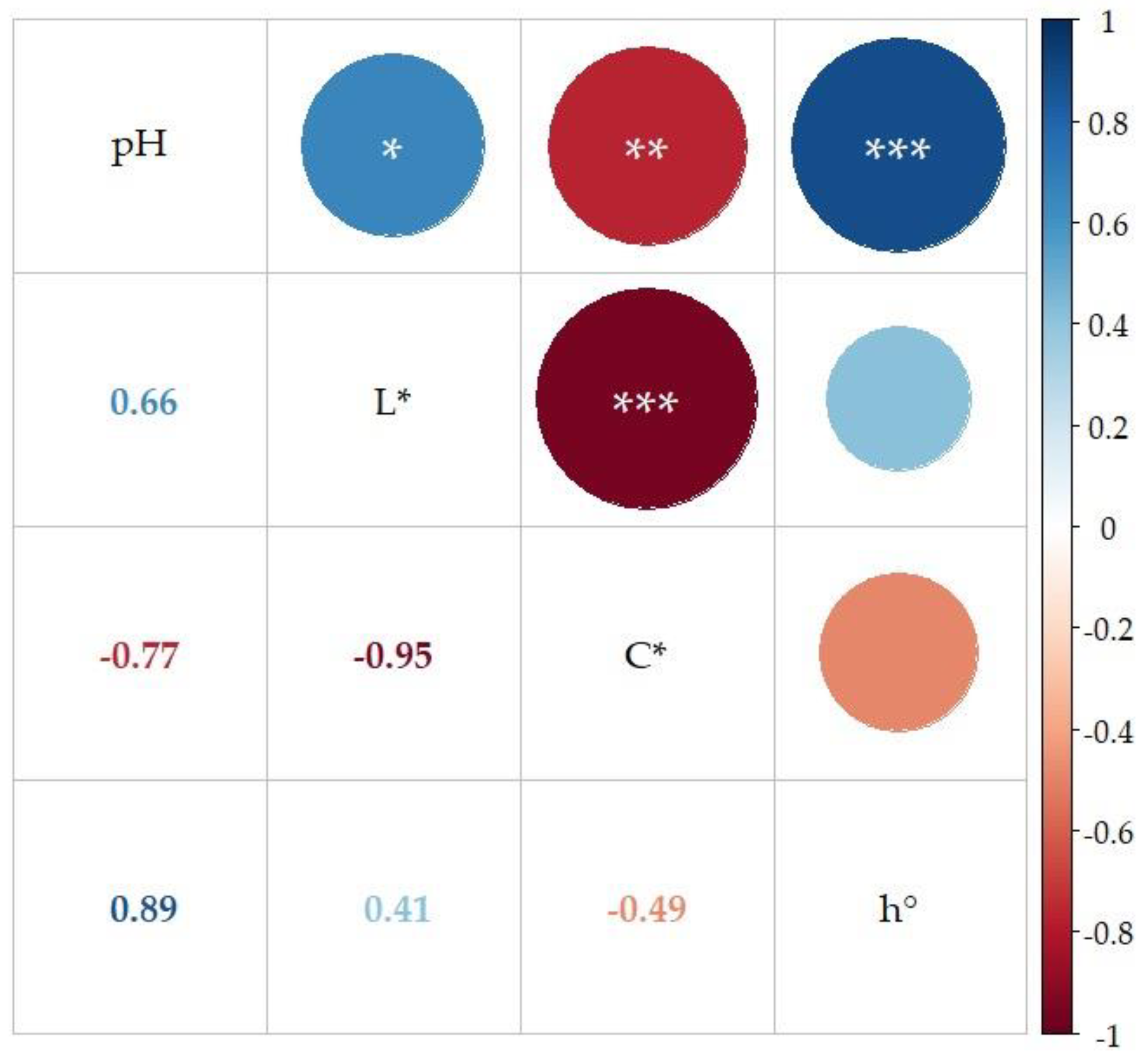 | Visual Appearance | pH | L* | C* | h° | Visual Appearance | pH | L* | C* | h° | |
