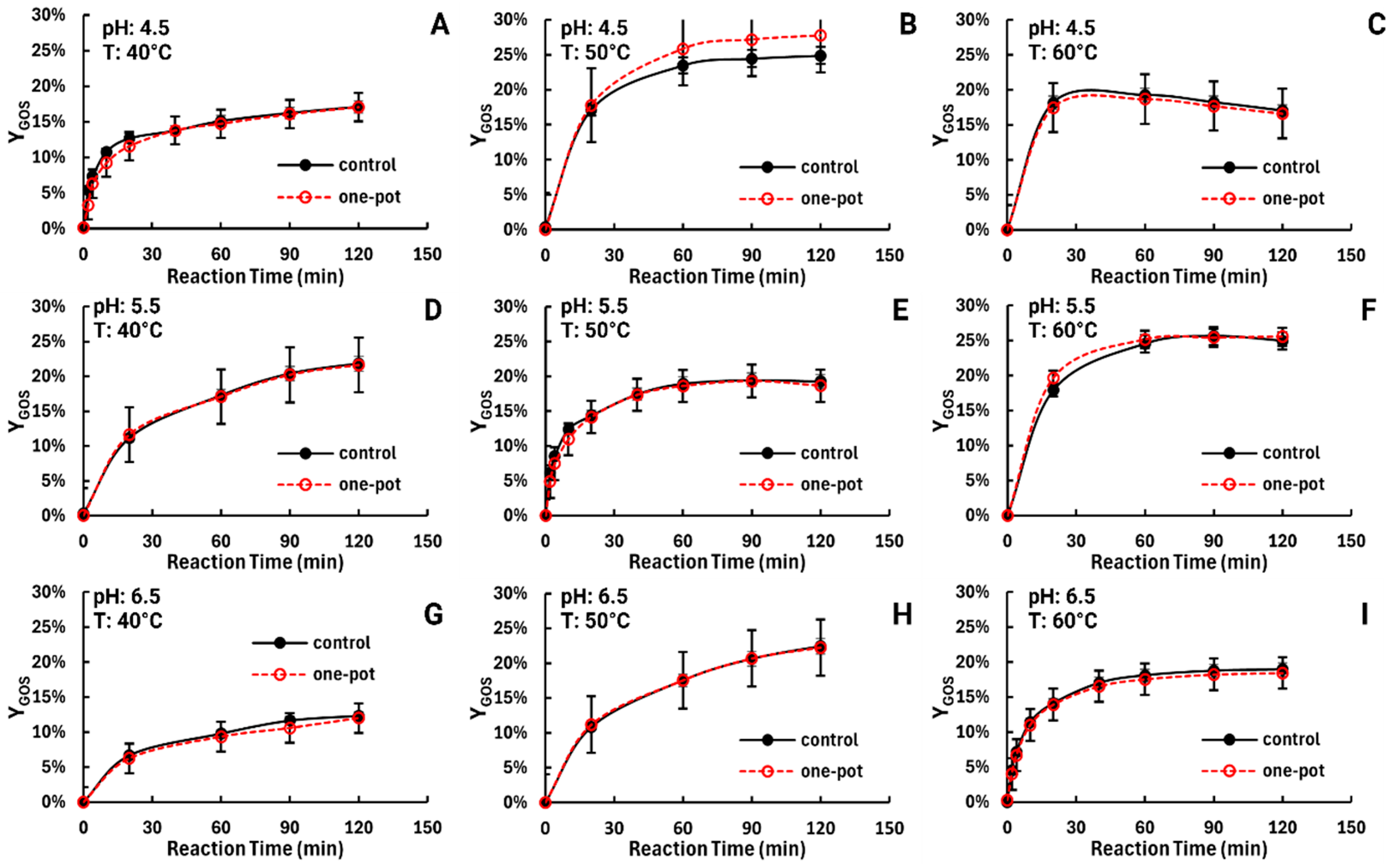 2.3. Simultaneous Production of GOS and Bioactive Peptides in One-Pot Reactor