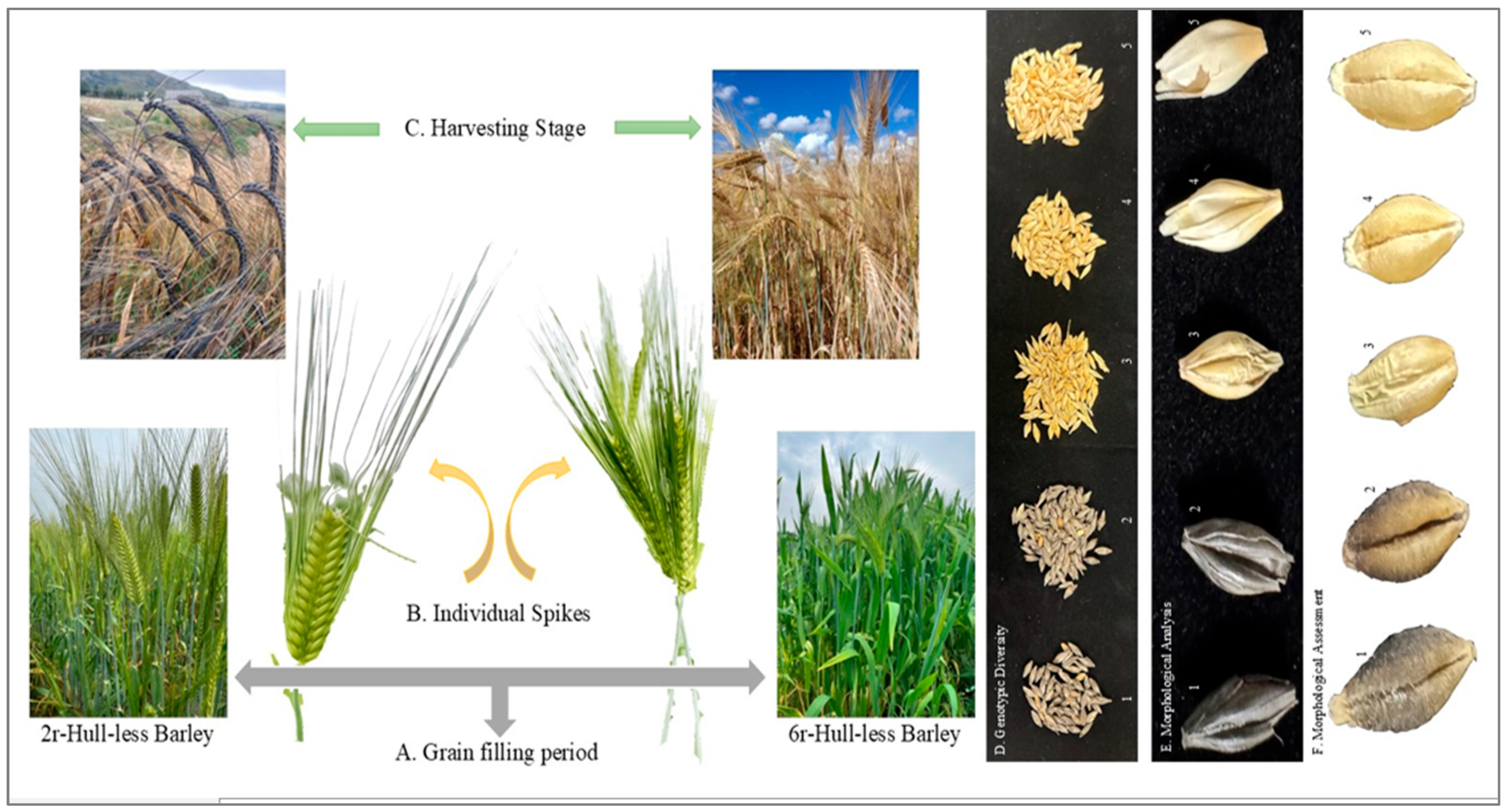 - Jiang, C.; Kan, J.; Gao, G.; Dockter, C.; Li, C.; Wu, W.; Yang, P.; Stein, N. Barley2035: A Decadal Vision for Barley Research and Breeding. Mol. Plant 2025, 18, 195–218. [Google Scholar] [CrossRef] [PubMed]