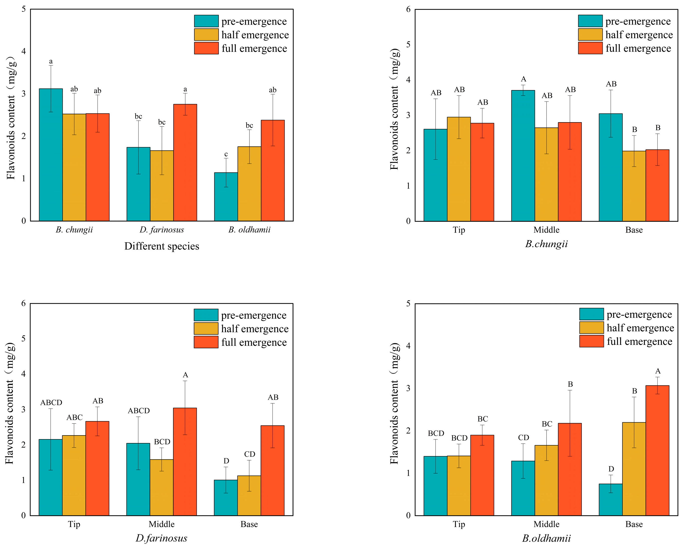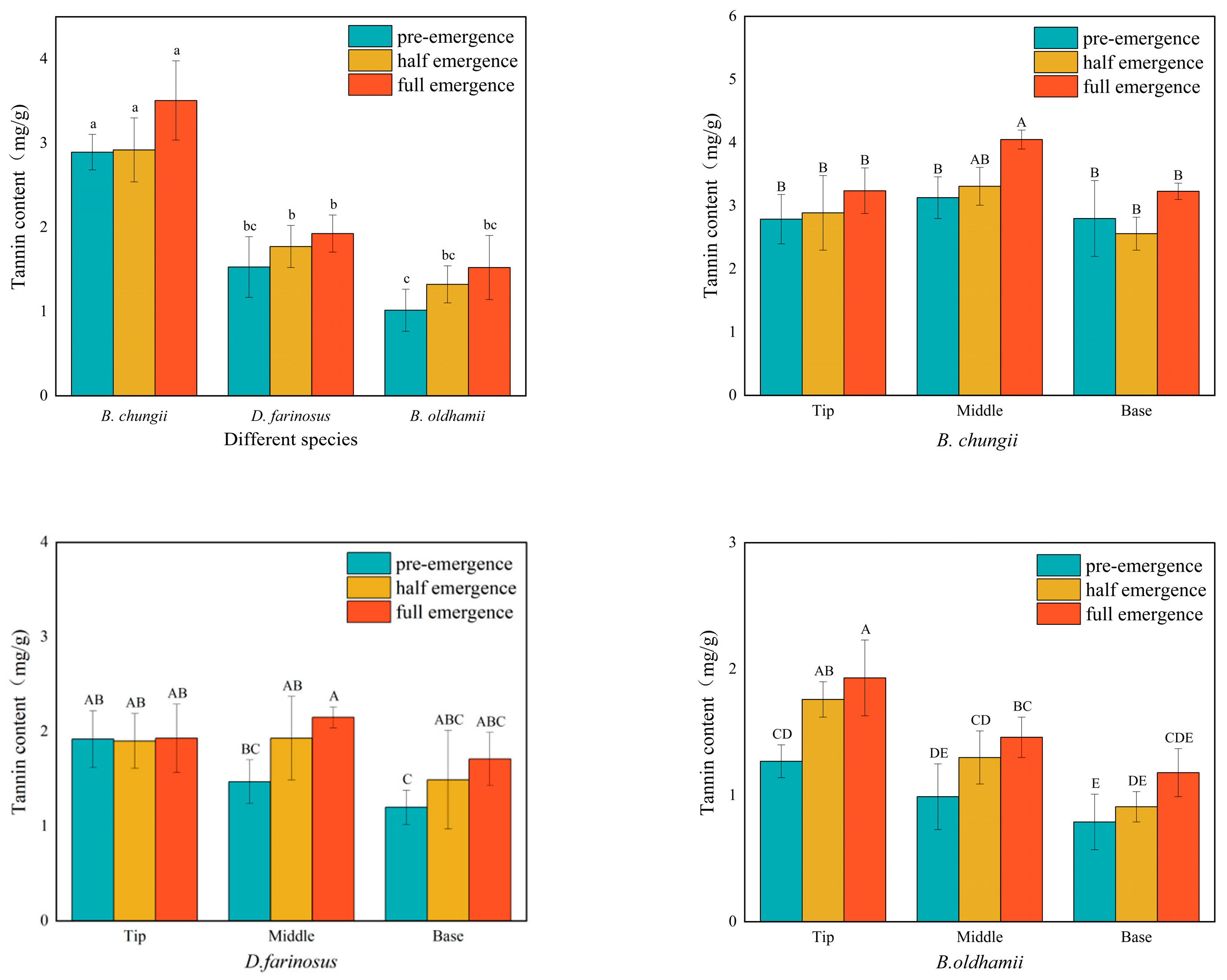 | Bamboo Species | Index | Full Emergence | Half Emergence | Pre-Emergence | ||||||
