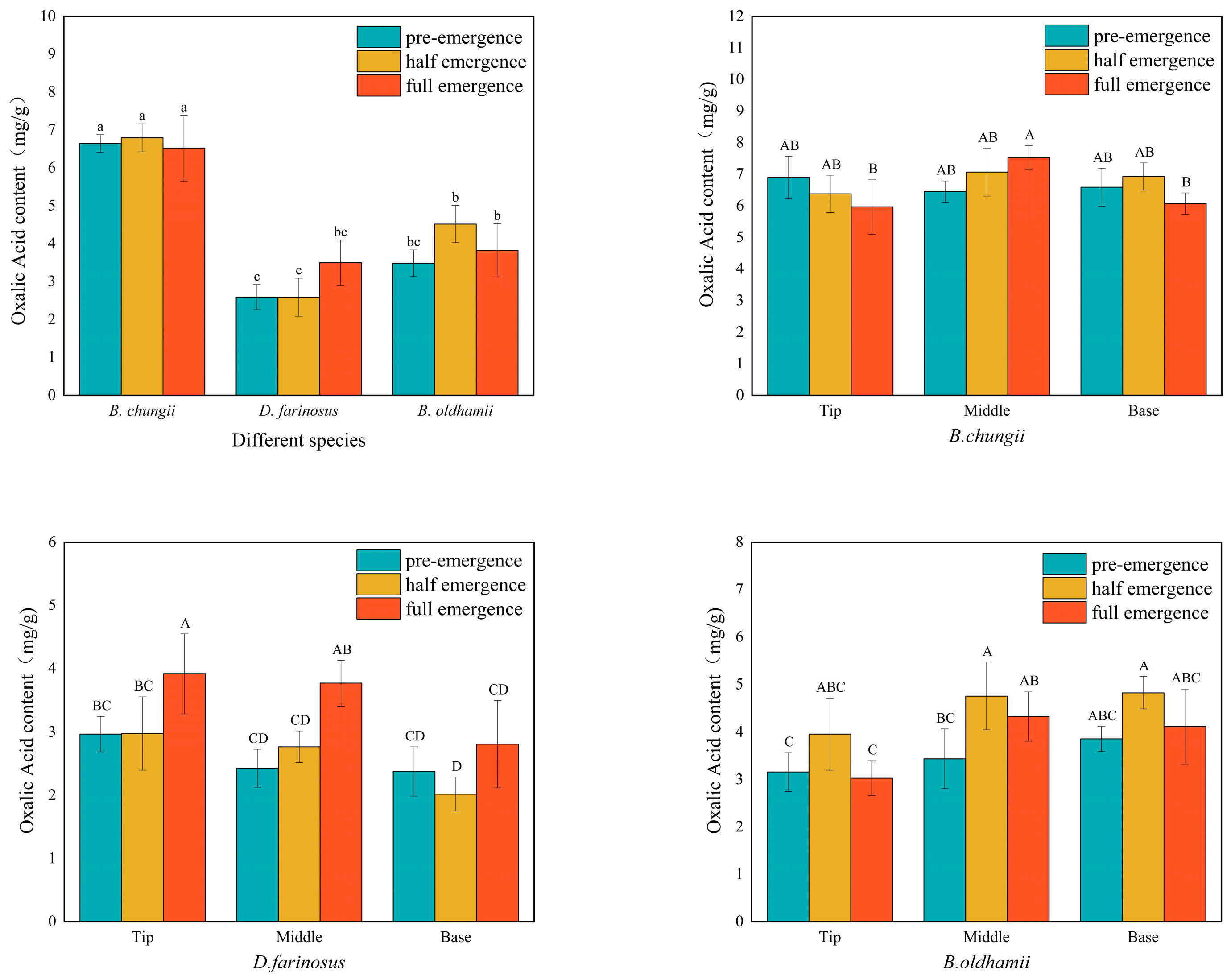 4.2.2. Oxalic Acid in Dendrocalamus farinosus