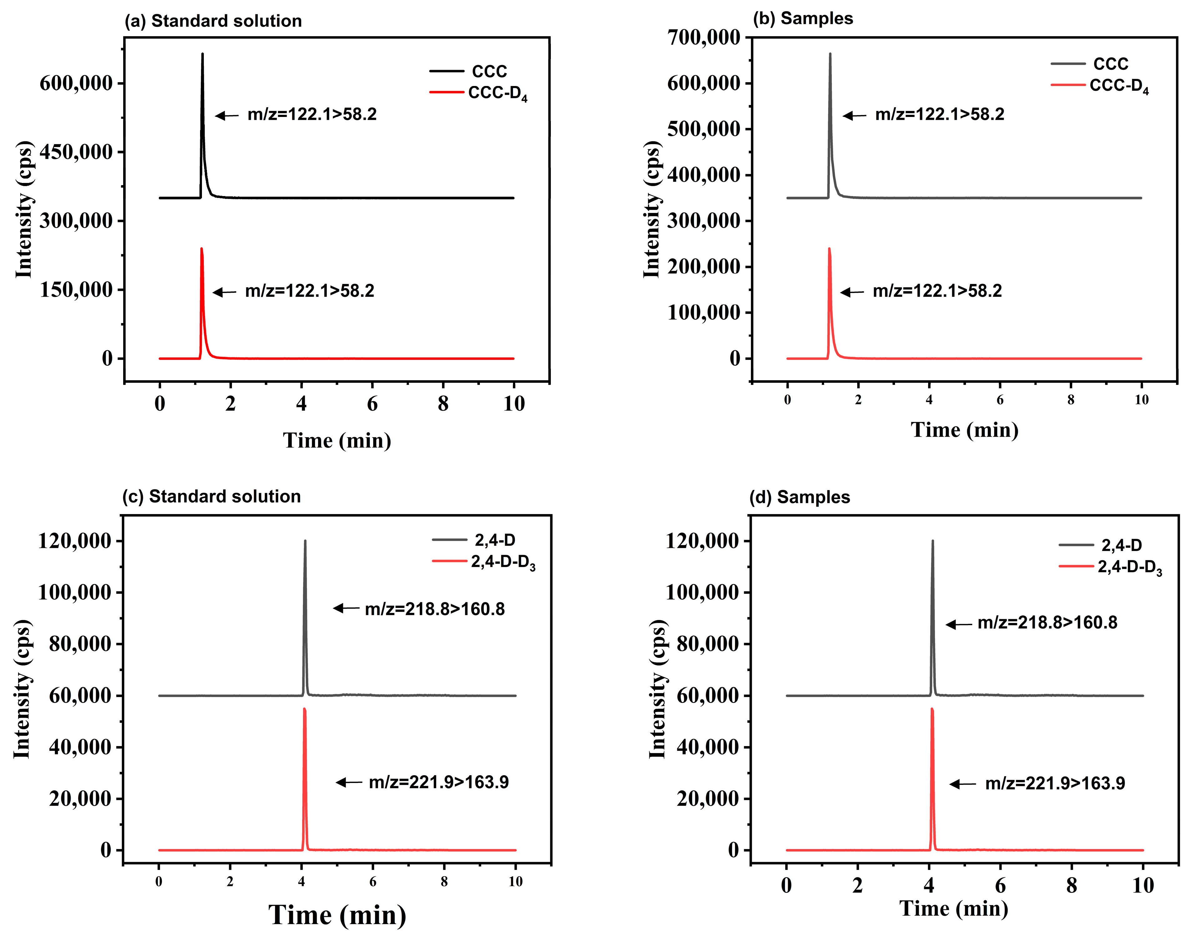 - Yang, H.; Geng, Y.; Lin, S.; Wang, L.; Peng, Y.; Xu, Y.; Zhang, J.; Liu, X. The determination of underivatized chlormequat, fosetyl-aluminium and phosphonic acid residues in maize and soybean by LC-MS/MS. Anal. Methods 2024, 16, 237–243. [Google Scholar] [CrossRef] [PubMed]