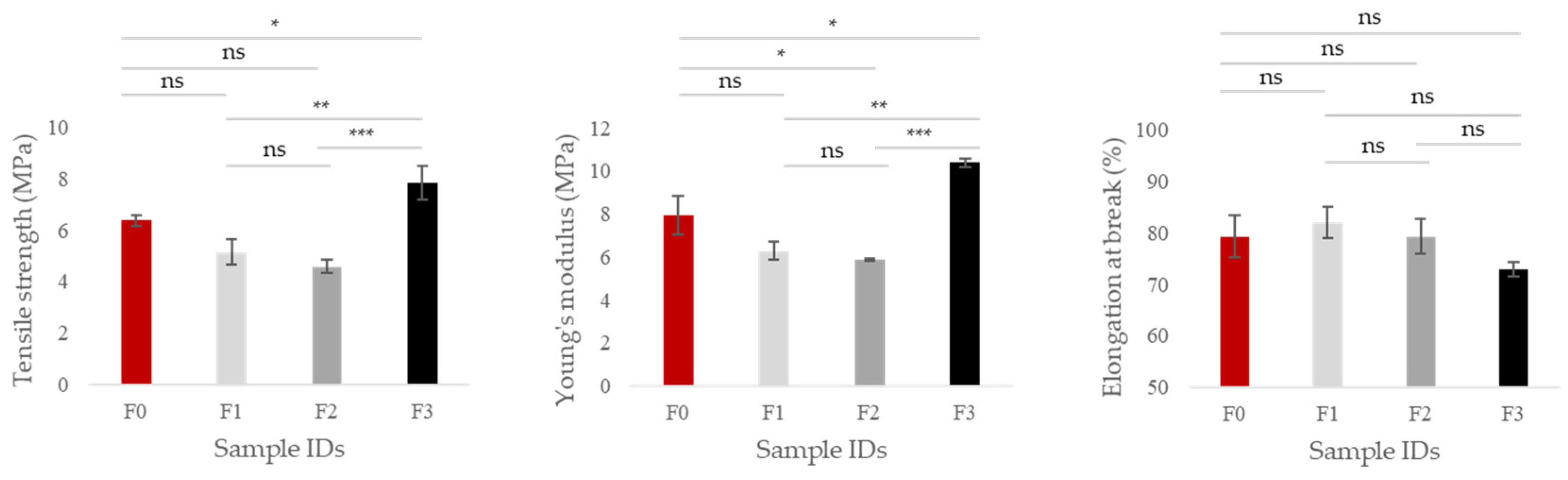 3.4.3. Mechanical Properties of Films