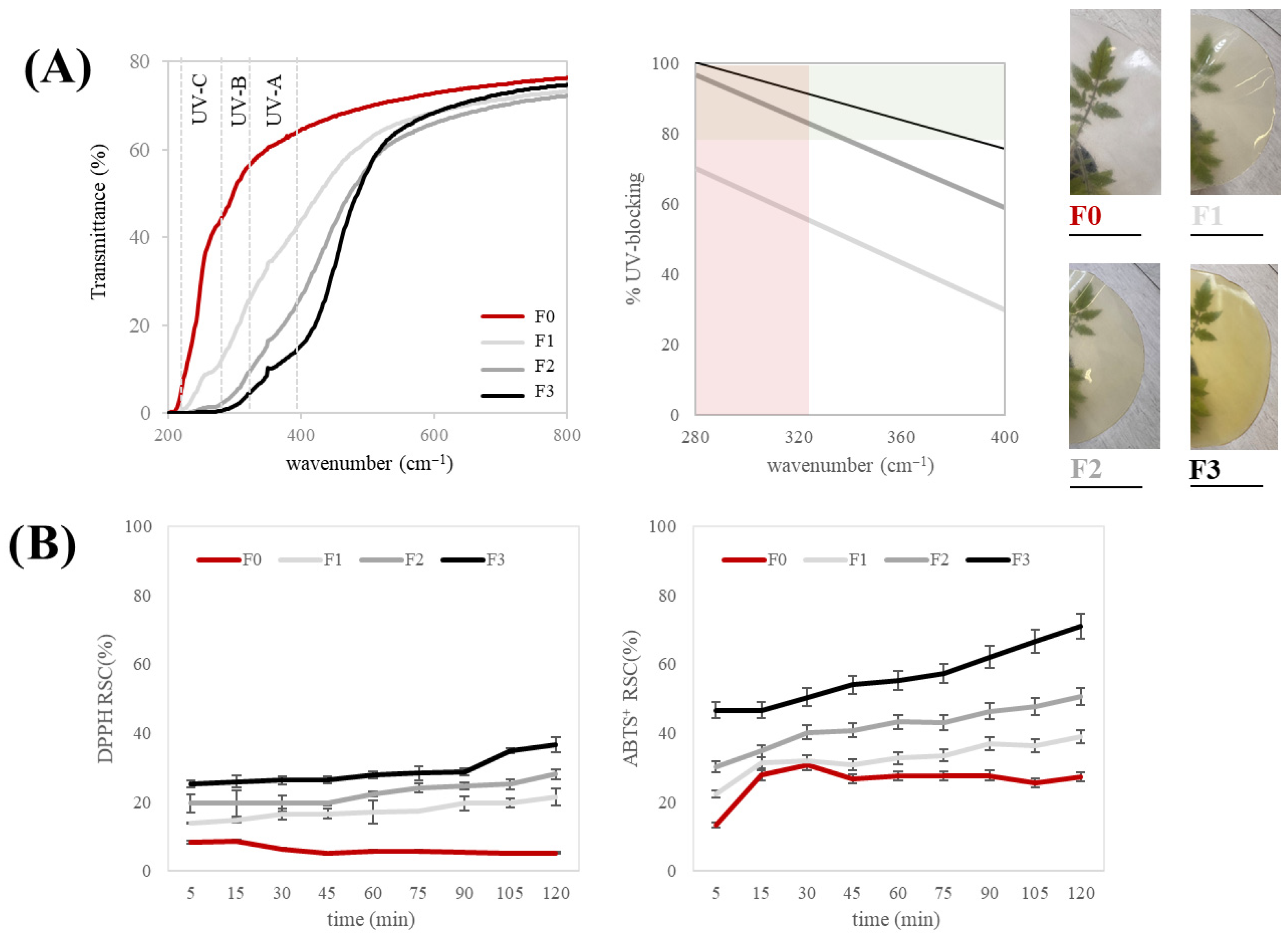 3.4.4. UV-Blocking and Antiradical Activity of Films
