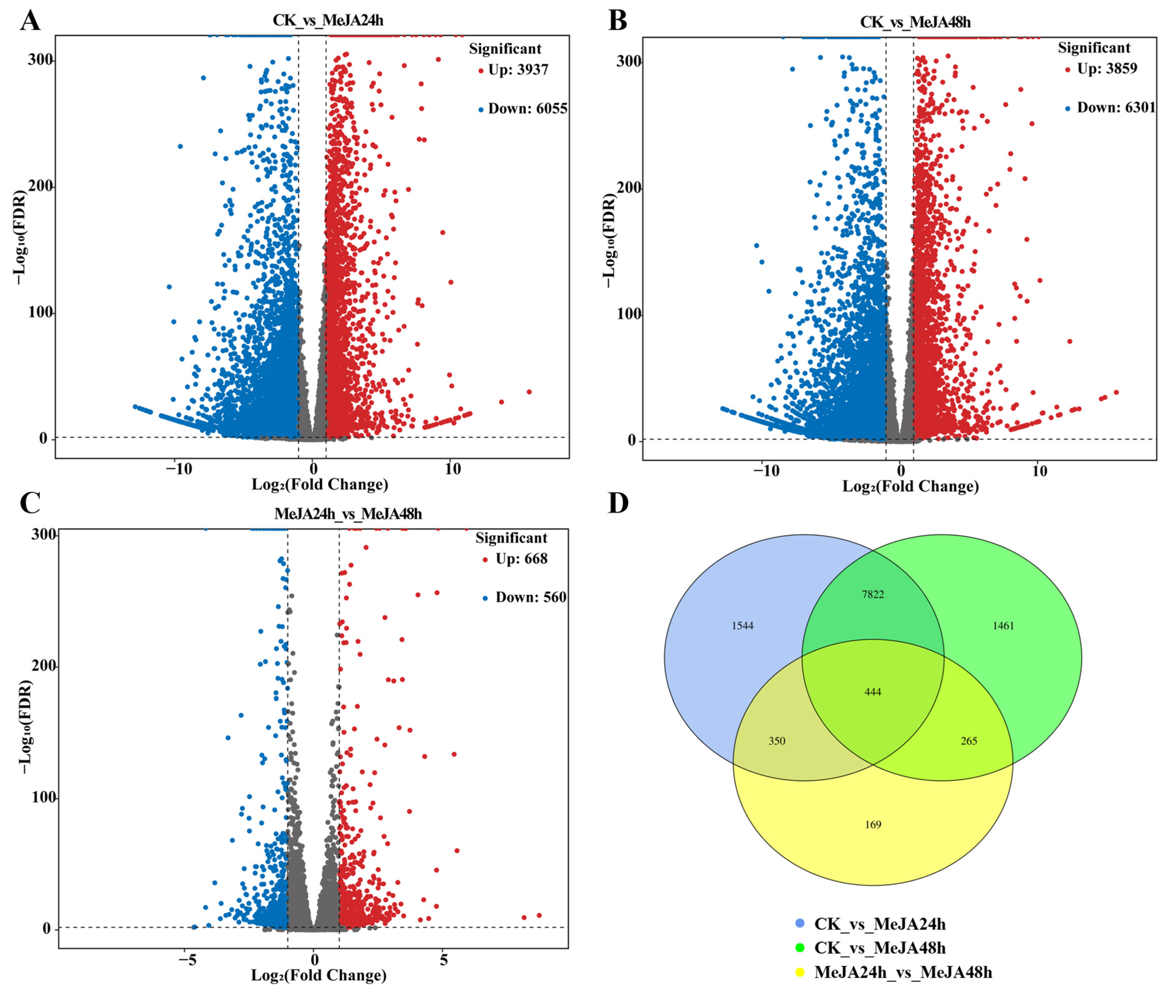 3.2. Transcriptome Sequencing and Differentially Expressed Gene Analysis in Loquat Callus Under MeJA Treatment