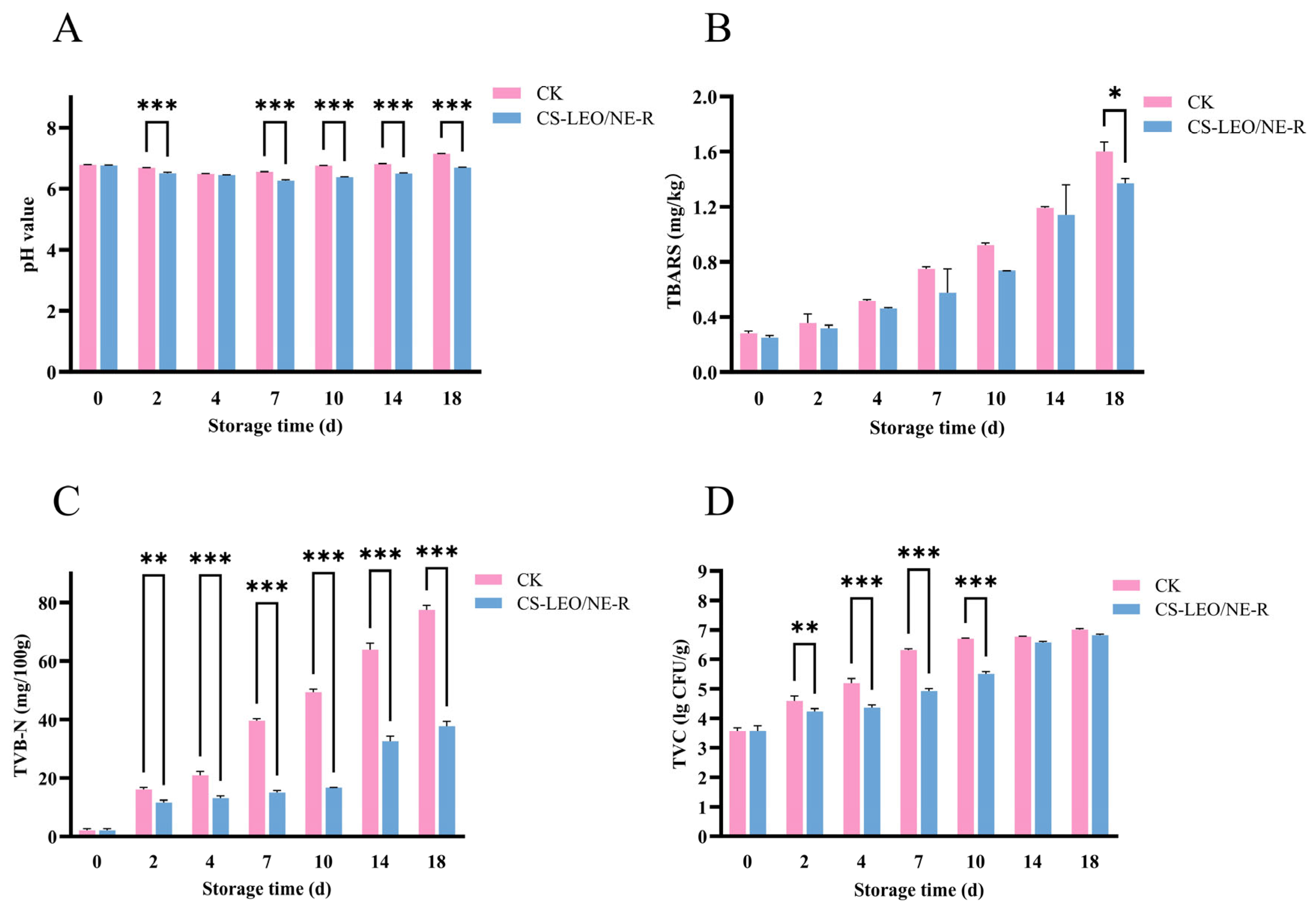 - Han, J.; Hou, H.; Zhu, J.; Wang, X.; Meng, F.; Chen, W. Chitosan-Based Coating Incorporated with Lemon Essential Oil/Rutin Composite Nanoemulsion for Pork Preservation. Foods 2025, 14, 3351. [Google Scholar] [CrossRef]