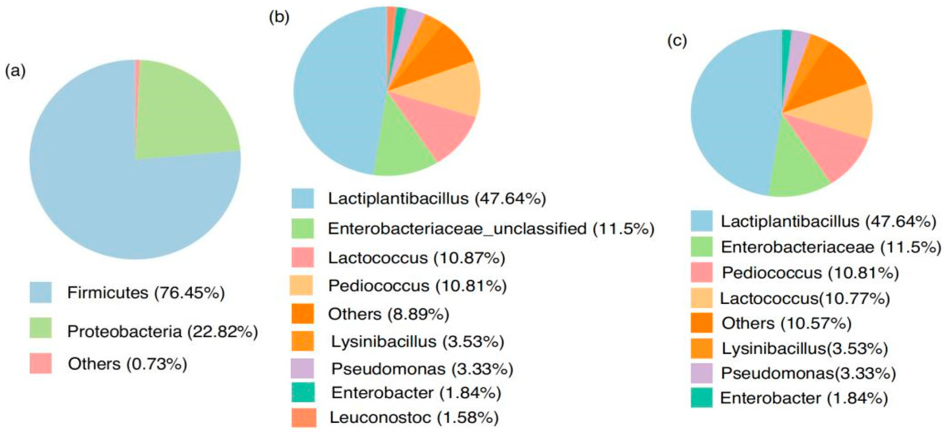3.2. Main Microorganisms Detected in the Fermented Shuidong Mustard