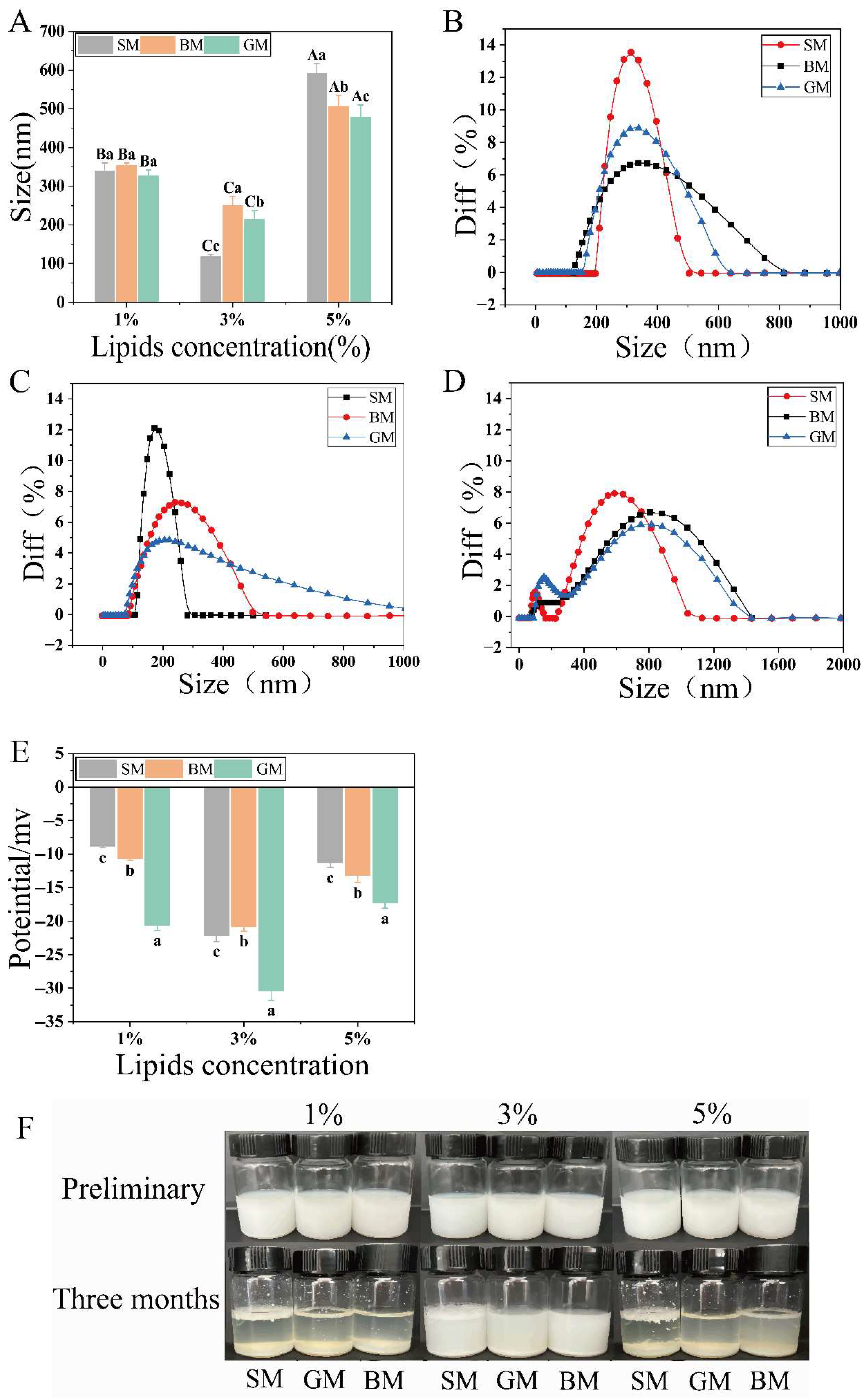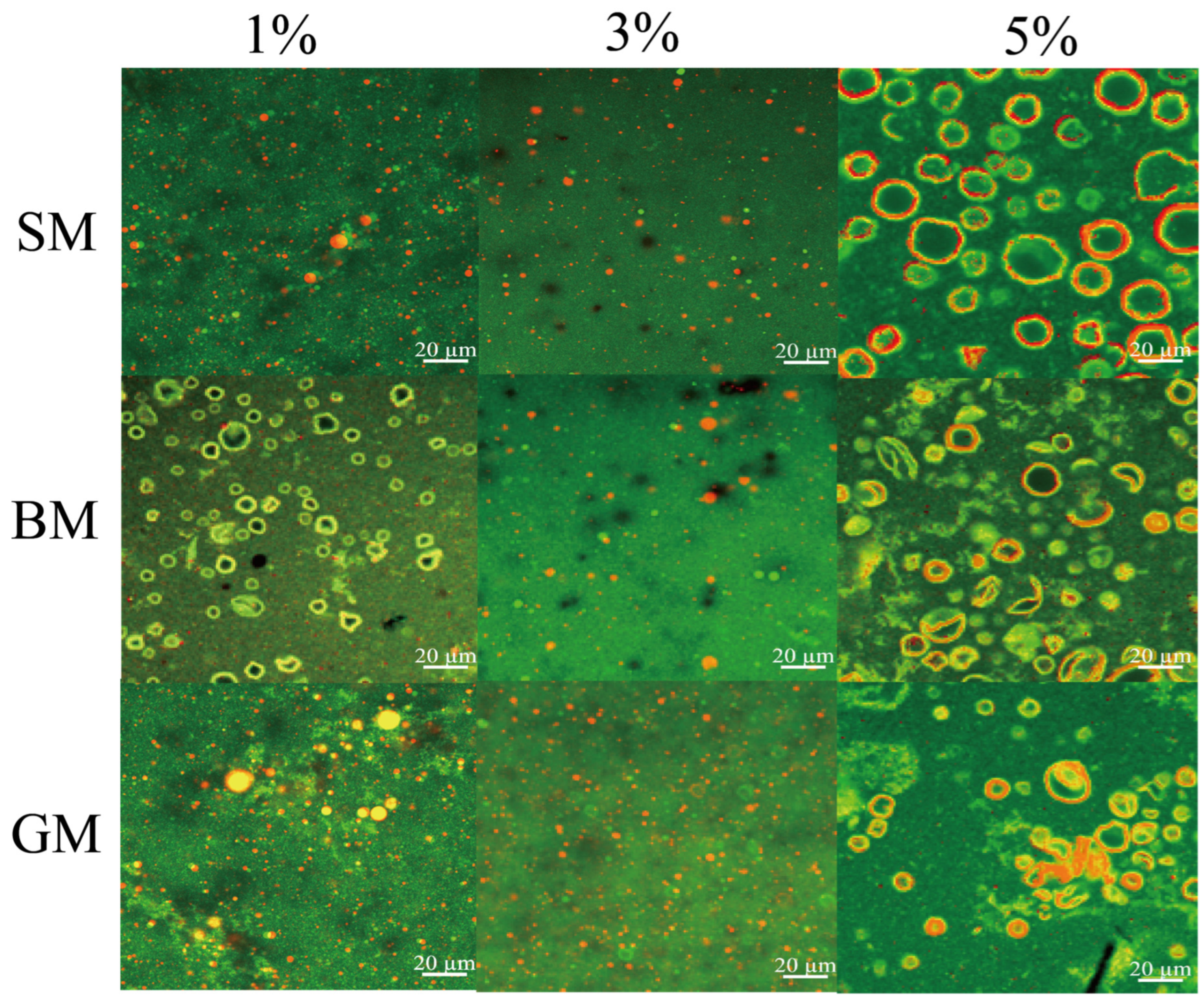 3.1. Effects of Different Lipid Concentrations on the Stability of Goat Milk Emulsion