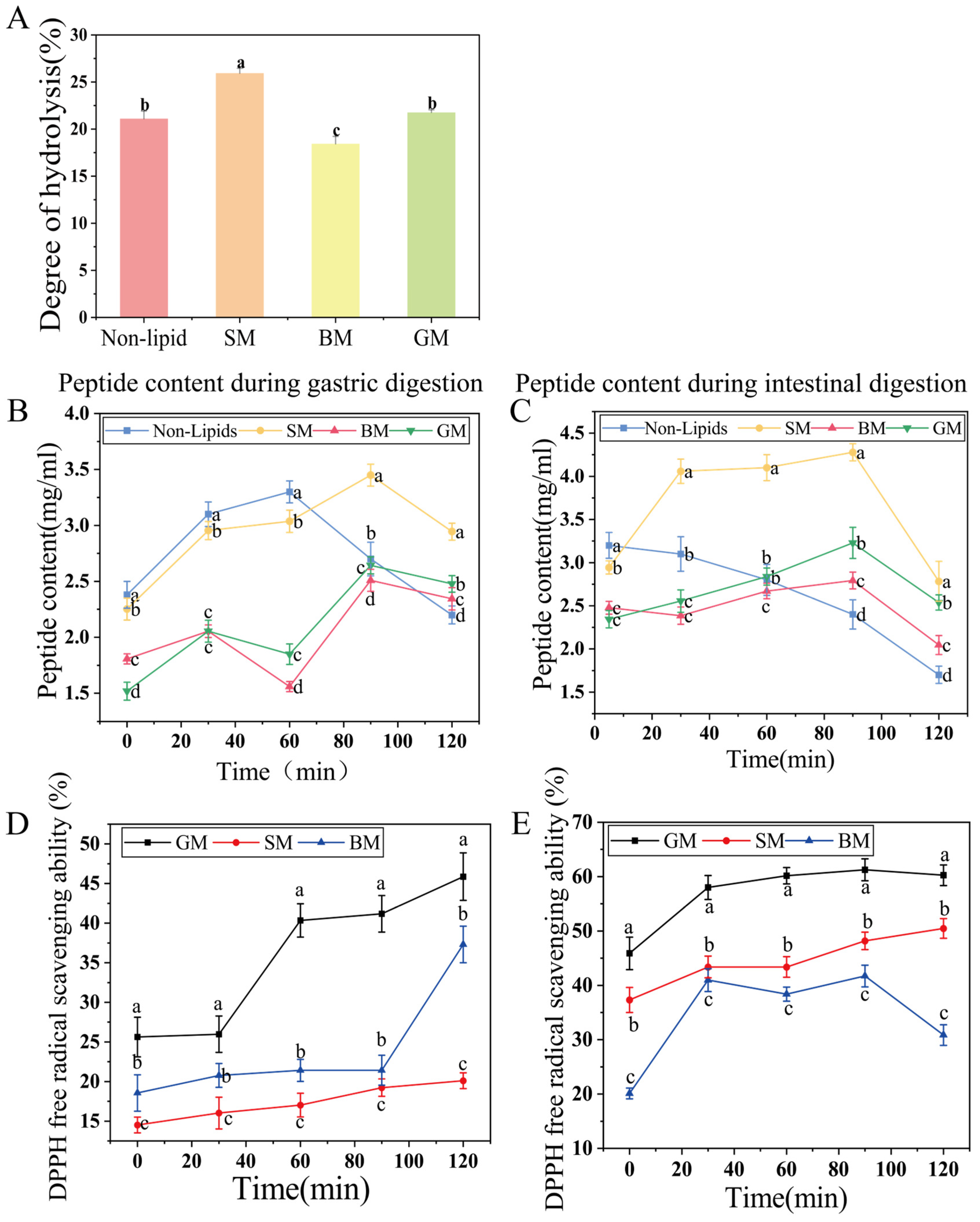 3.4. Effect of Different Lipid Sources on Peptide Absorption in Caco-2 Cells