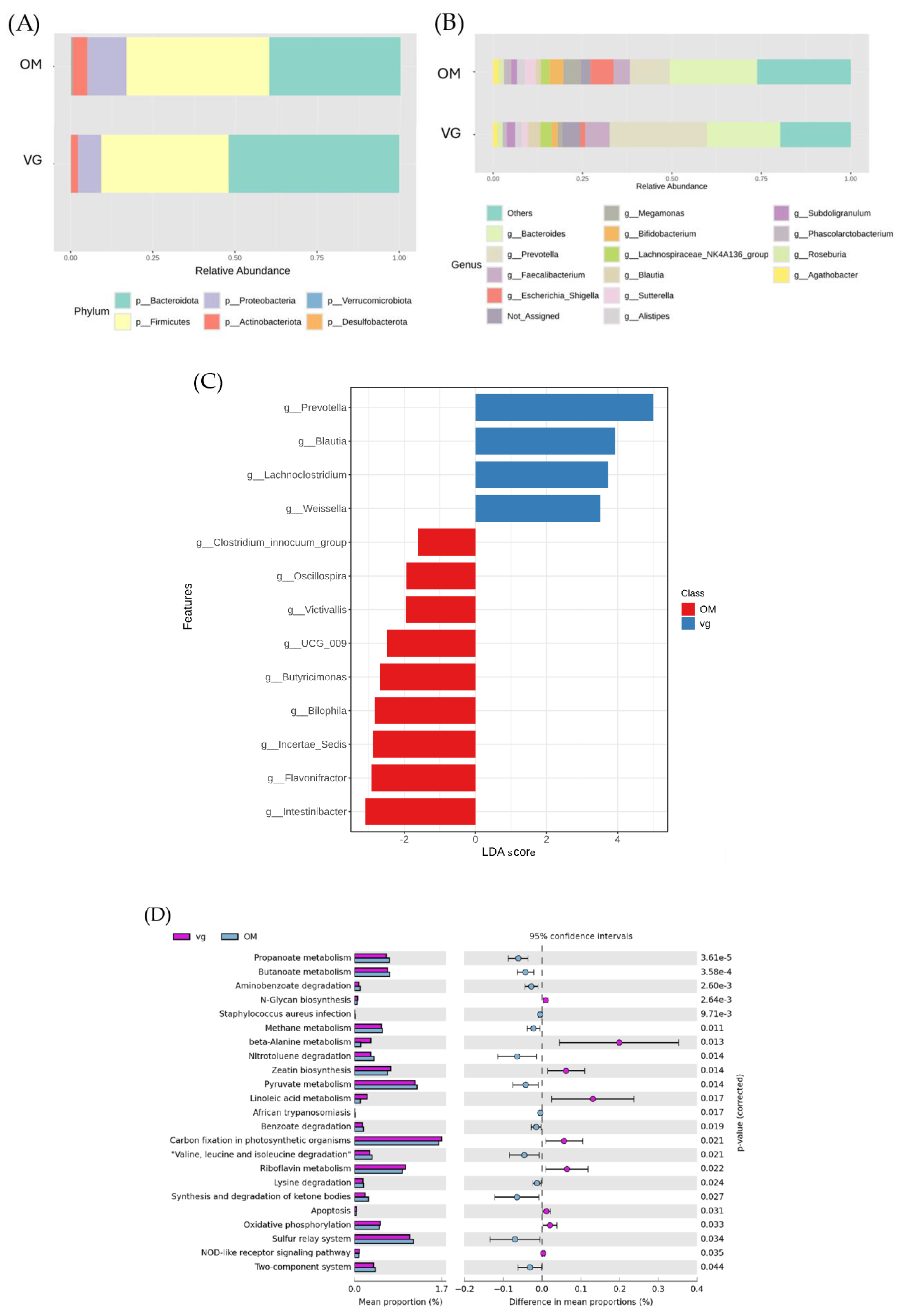 3.1. Pivotal Interplays of Key Diversity and Functional Pathways Between VG and OM Gut Bacterial Microbiota