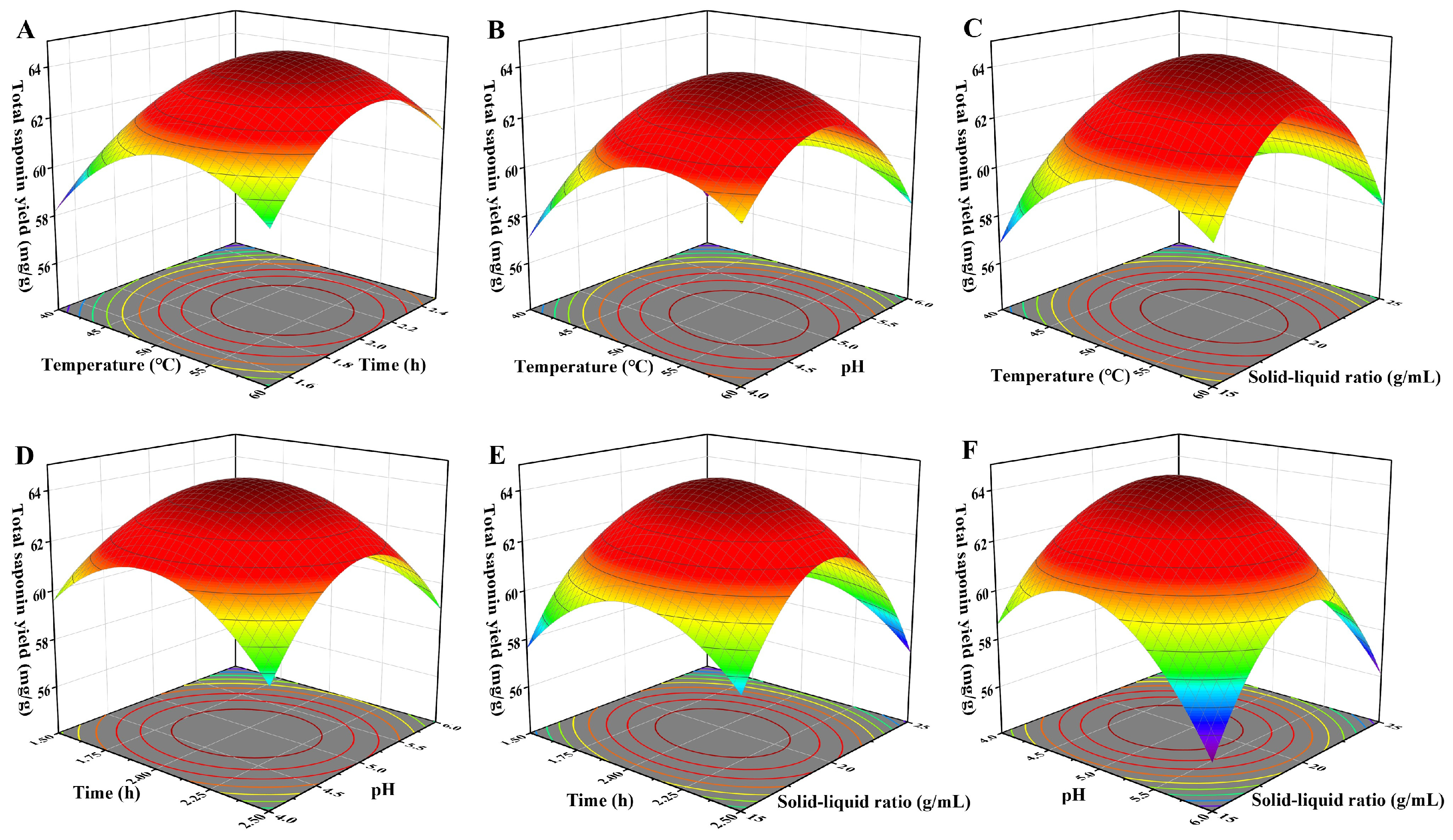 | Solid–liquid ratio (g/mL) | 1:10, 1:15, 1:20, 1:25, 1:30 |