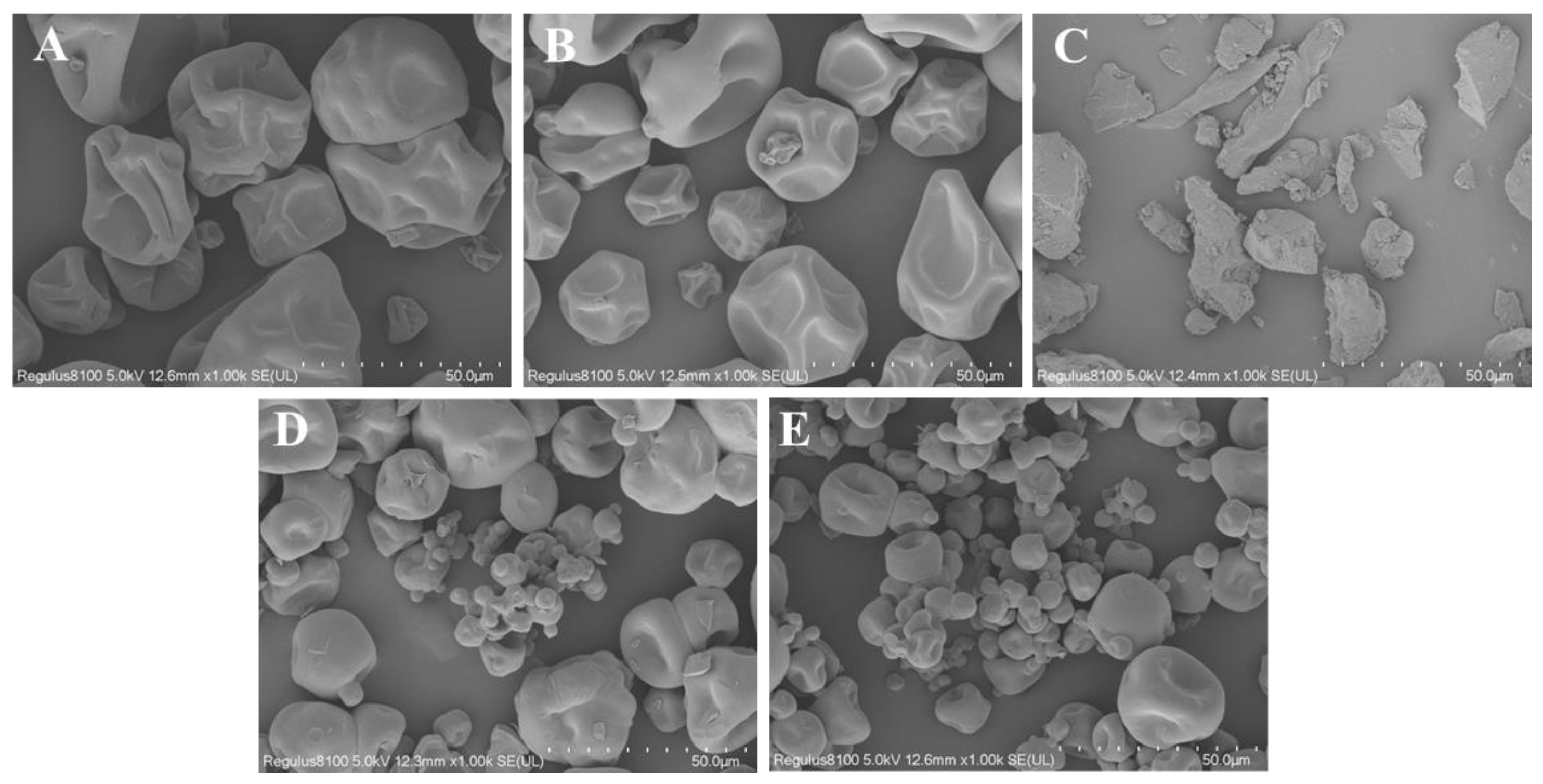 2.8. Water Activity, Moisture Content, Solubility, and Hygroscopicity