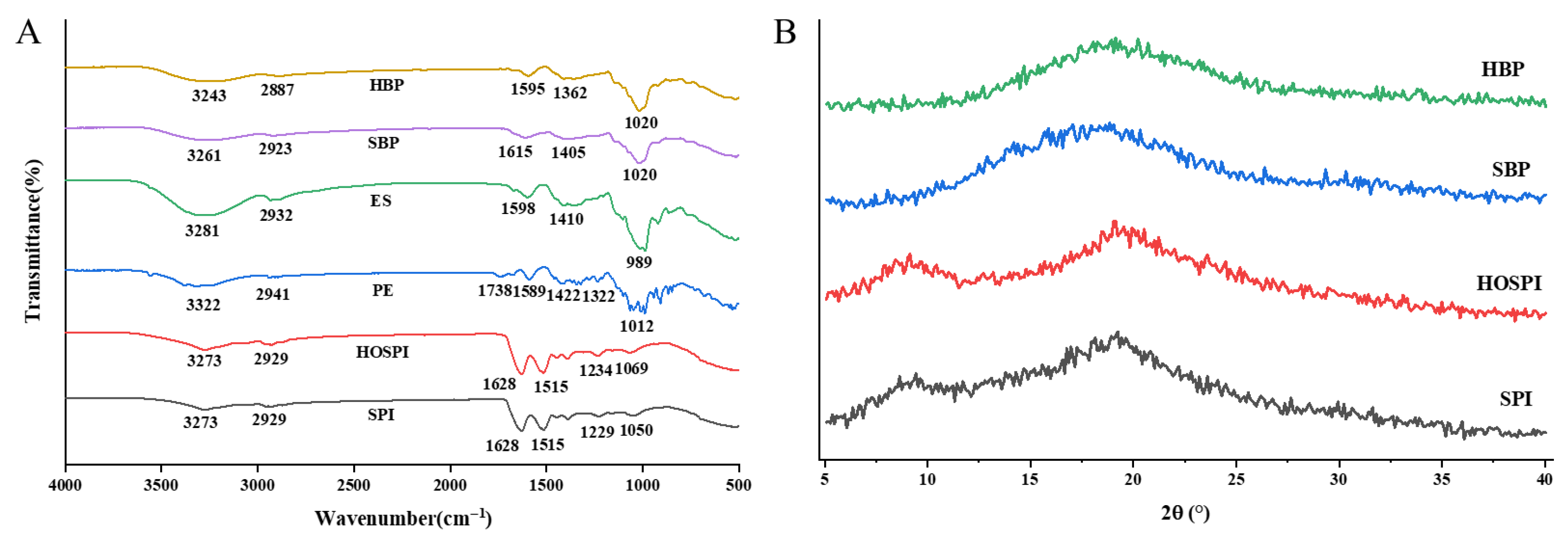 - Ma, X.; Chi, C.; Pu, Y.; Miao, S.; Liu, D. Conjugation of Soy Protein Isolate (SPI) with Pectin: Effects of Structural Modification of the Grafting Polysaccharide. Food Chem. 2022, 387, 132876. [Google Scholar] [CrossRef]