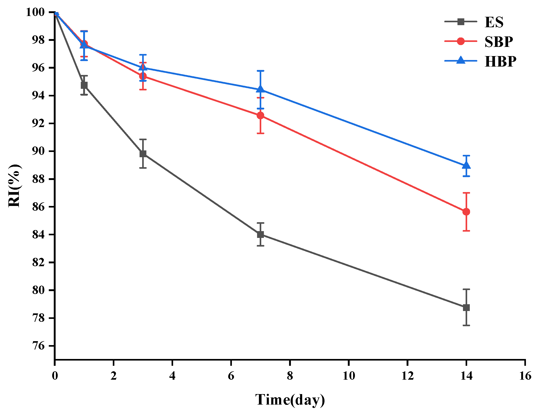 | HBP | 3.58 ± 0.13 a | 0.315 ± 0.003 a | 97.49 ± 0.47 a | 5.43 ± 0.54 b |