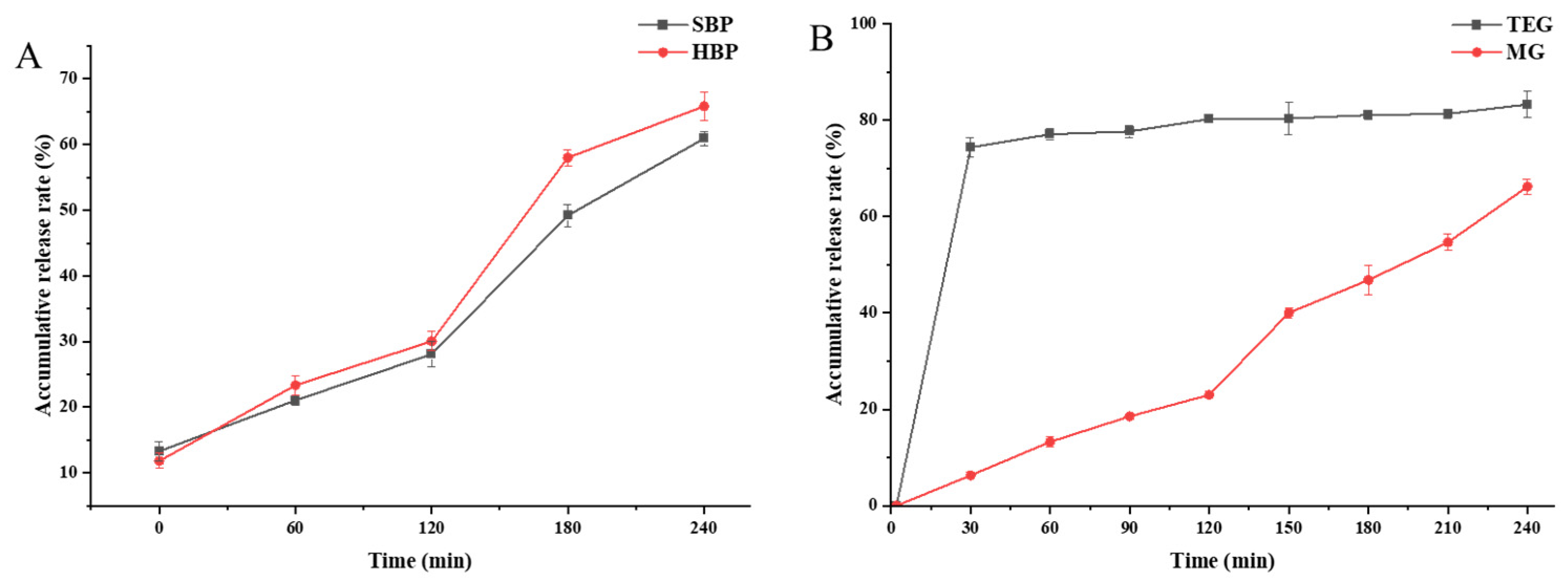 3.4.3. Particle Size, PDI, ζ-Potential, and Encapsulation Efficiency of Microcapsules