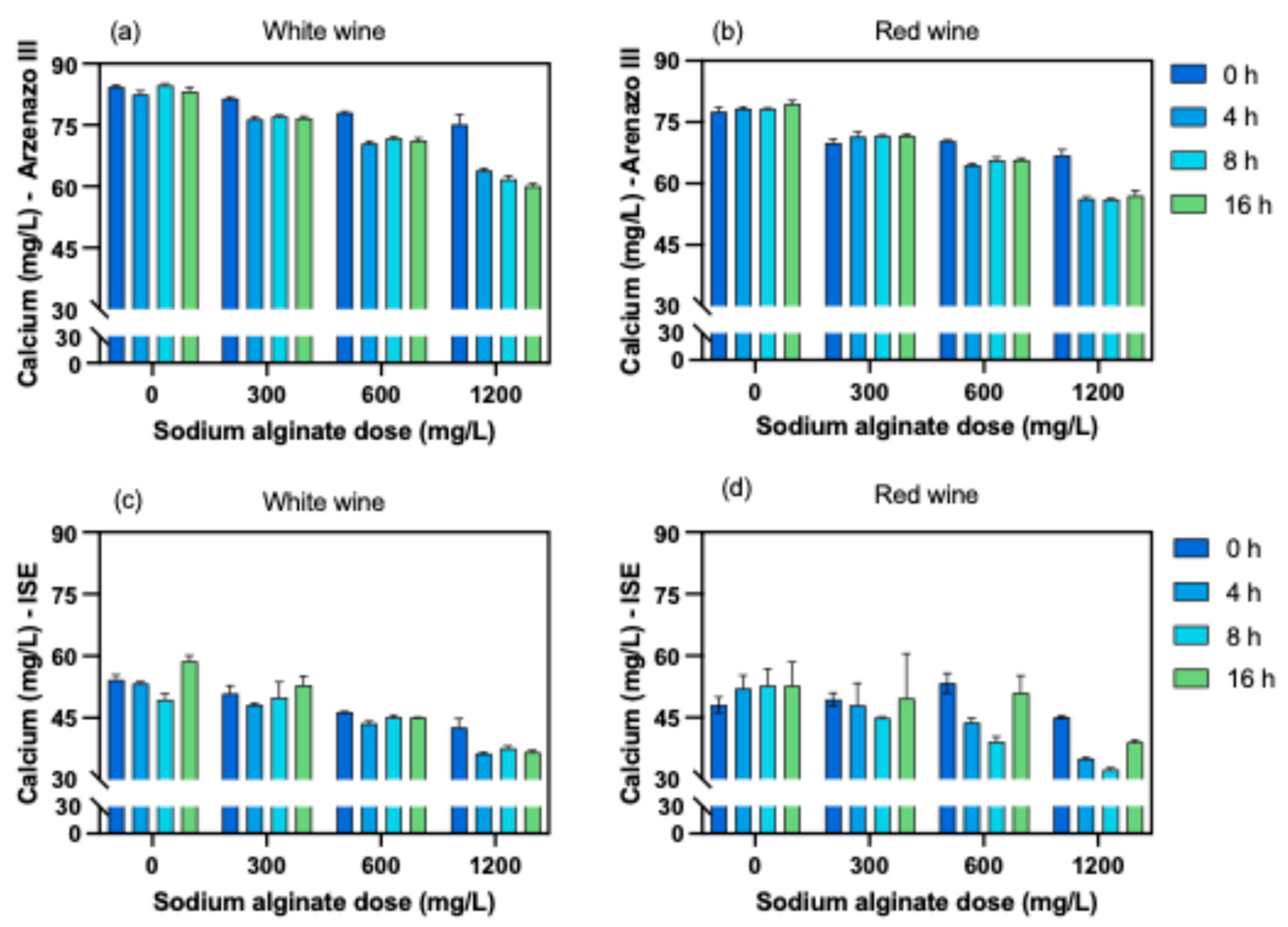 Laurie, V.F.; Hormazabal-Moya, B.; Castro, R.I.; Ubeda, C.; Gil i Cortiella, M. Sodium Alginate Decreases the Concentration of Calcium in Wines, Possibly Lowering the Risk of Calcium Tartrate Instability. Foods 2026, 15, 1354. https://doi.org/10.3390/foods15081354