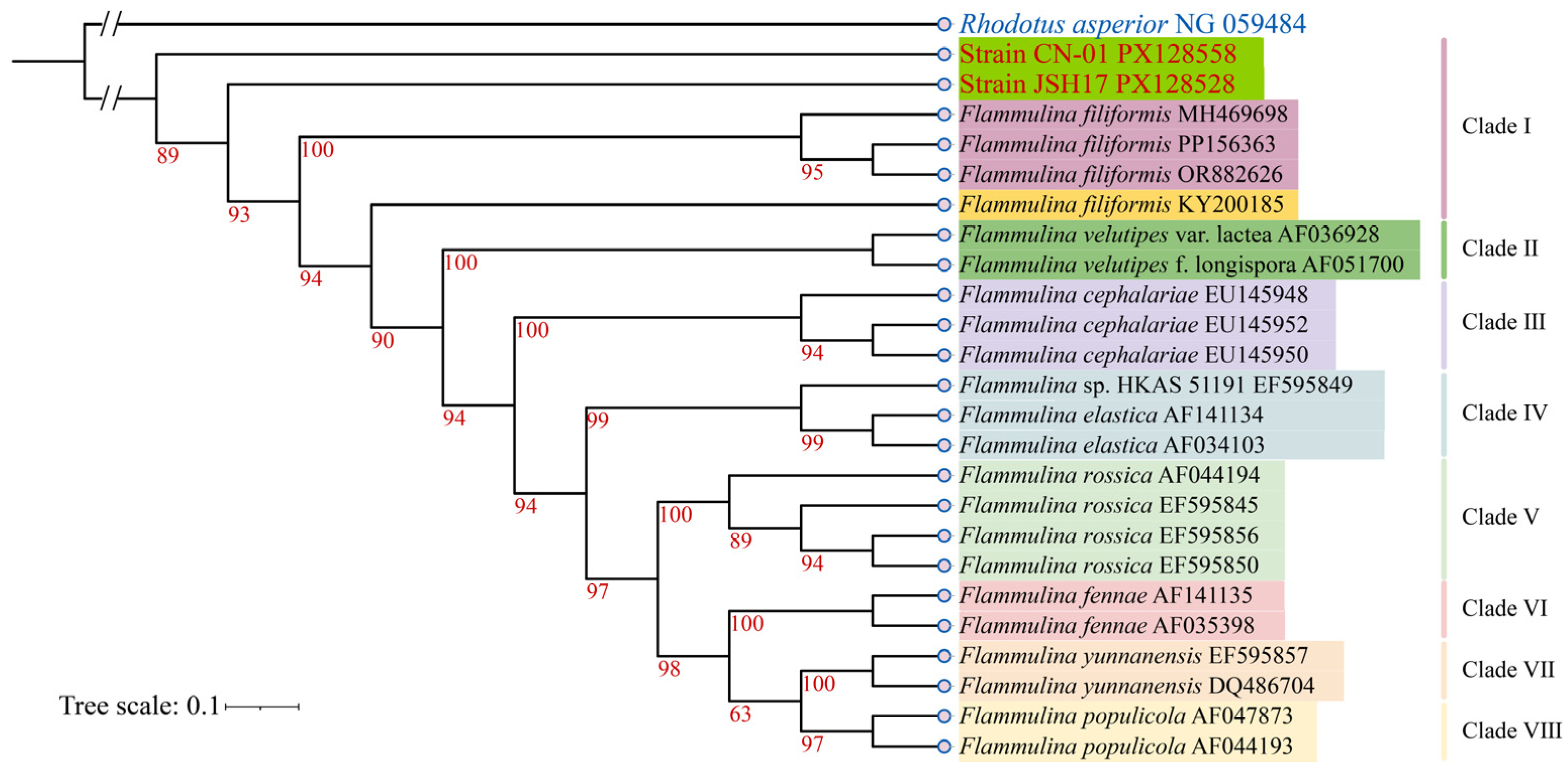 - Lv, Z.-W.; Zhang, J.; Nie, M.; Wei, C.; Zhang, T.; Liu, F.; Ling, Z.-L.; Chen, X.; Wu, X.-P.; Tao, Y.; et al. Dual genetic loci and flavonoid metabolism orchestrate fruiting body coloration in Flammulina filiformis: A multi-omic roadmap for fungal pigmentation. J. Adv. Res. 2025, in press. [Google Scholar] [CrossRef] [PubMed]