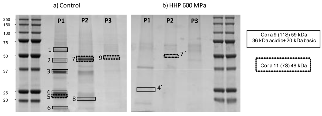 Prieto, N.; Burbano, C.; Iniesto, E.; Rodríguez, J.; Cabanillas, B.; Crespo, J.F.; Pedrosa, M.M.; Muzquiz, M.; Del Pozo, J.C.; Linacero, R.; et al. A Novel Proteomic Analysis of the Modifications Induced by High Hydrostatic Pressure on Hazelnut Water-Soluble Proteins. Foods 2014, 3, 279-289. https://doi.org/10.3390/foods3020279