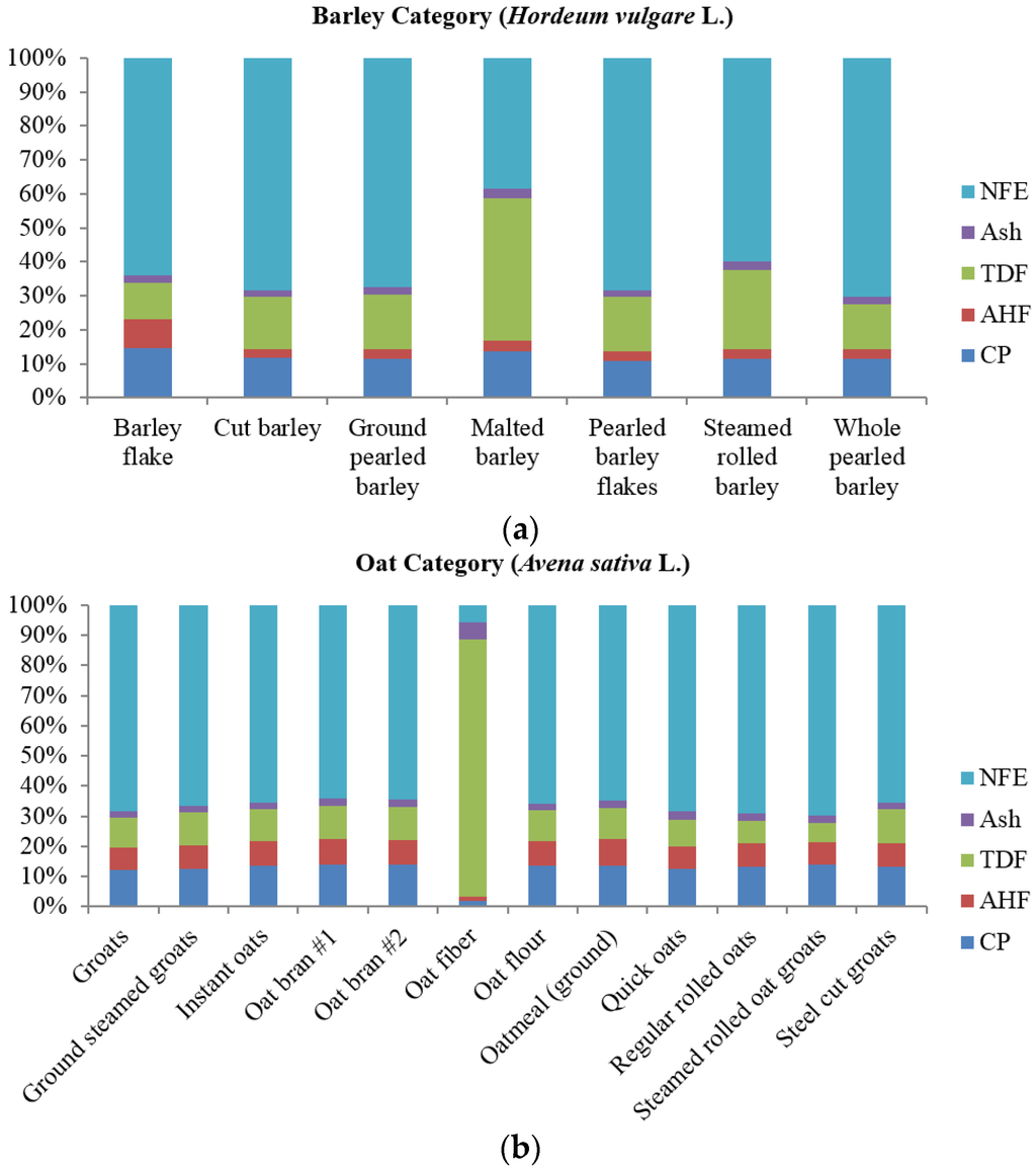 | Barley flake | 91.8 | 97.8 | 14.5 | 8.5 | 10.8 | 6.5 | 4.3 | 4.8 |