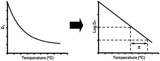 | Bacterial Species | Temperature (°C) | DT (Minutes) | z (°C) | |