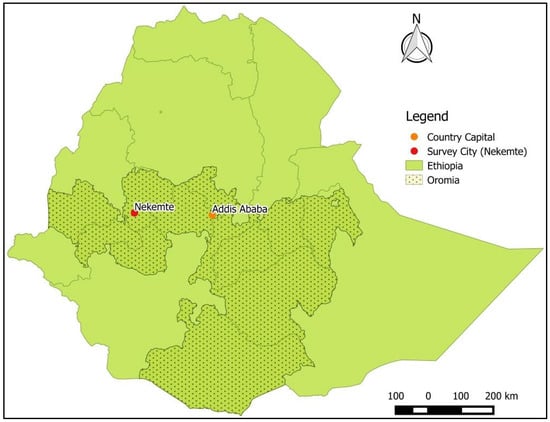 Study site (Nekemte Coordinates: 9.0893° N, 36.5554° E; Elevation 2,088 m).