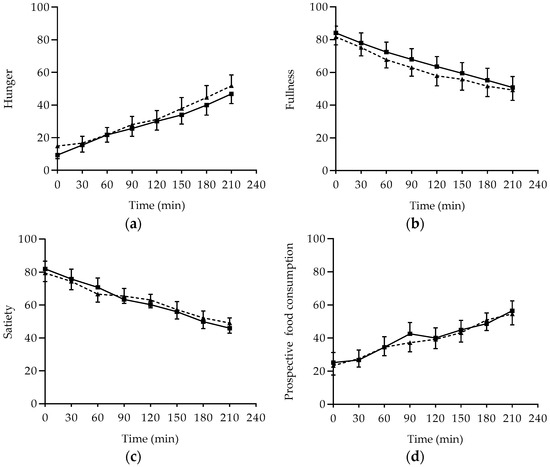 - Flint, A.; Raben, A.; Blundell, J.E.; Astrup, A. Reproducibility, power and validity of visual analogue scales in assessment of appetite sensations in single test meal studies. Int. J. Obes. Relat. Metab. Disord. 2000, 24, 38–48. [Google Scholar] [CrossRef] [PubMed]