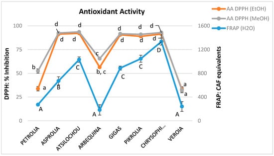- Goulas, V.; Papoti, V.T.; Exarchou, V.; Tsimidou, M.Z.; Gerothanassis, I.P. Contribution of flavonoids to the overall radical scavenging activity of olive (Olea europaea L.) leaf polar extracts. J. Agric. Food Chem. 2010, 58, 3303–3308. [Google Scholar] [CrossRef]