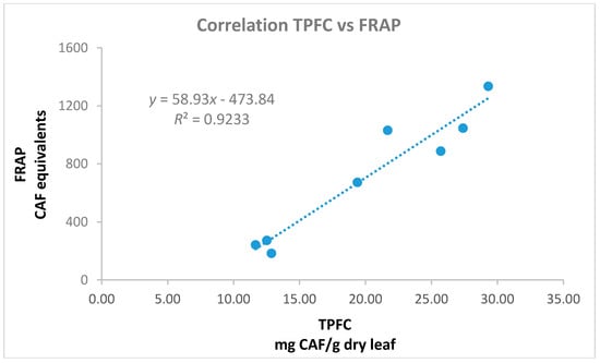 2.4. Content in Total Phenols Determined via the Folin–Ciocalteu Assay (TPFC)