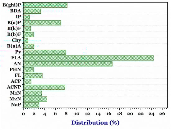 Distribution percentage of individual PAHs in the grilled meat samples.