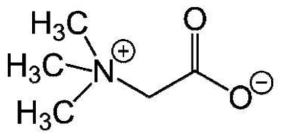 Betaine represents a bioactive compound that has significant physiological functions in the human organism as an osmolite and donor of methyl groups for many biochemical processes. As such, it is indispensable to preserve the health of kidneys, liver, and heart [5]. This compound has an important role in preventing and treating many chronic diseases, among which lowering of plasma homocysteine levels has gained the most attention [5,6,7]. High serum homocysteine levels have been associated with increased risk for cardiovascular diseases (stroke, heart attack, atherosclerosis), cancer, peripheral neuropathy, etc. Moreover, betaine has been shown to improve athletic performance by enhancing muscle endurance [7,8].