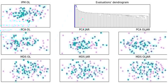 In this section, the analysis of the consumers’ evaluations of the experiments is described. Comparison between classic techniques and our methodology is performed to understand the knowledge elicited based on different approaches. In addition, we compared the use of different techniques and data for creating the LPL maps. In total, we analyzed the performance of fourteen different methodologies obtained by combining the different techniques for constructing the product acceptance map (QUA and SVM), for calculating the consumers’ map (IPM, PCA and MDS) and by combining the data that these techniques can use (OL, JAR or OLJAR).