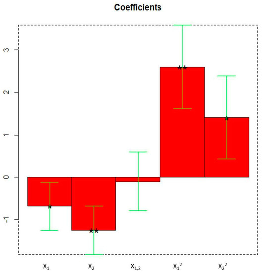 All the linear and quadratic terms are significant as highlighted in the plot of the coefficients (Figure 3).