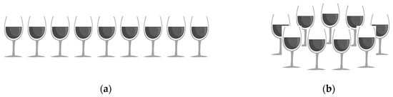 Panelists were presented with brackets of nine samples at a time (comprising wine, RAW and blends thereof), using four different orders of presentation: (i) samples presented in a linear format, in random order, hereafter ‘row, randomized’; (ii) samples presented in a linear format, with alcohol content decreasing from left to right, hereafter referred to as ‘row, ordered’; (iii) samples presented in a circular format (i.e., evenly spaced around a circular tray), in random order, hereafter ‘circular, randomized’; and (iv) samples presented in a circular format with alcohol content increasing in a clockwise direction, hereafter referred to as ‘circular, ordered’ (Figure 1).