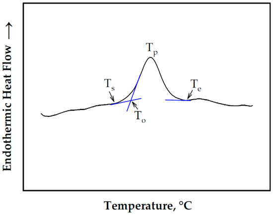 The endotherm characteristics from DSC curves: Ts—start temperature; Te—end temperature; To—onset temperature; Tp—peak temperature.