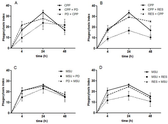 3.6. The Effect of RES and PD on Crystal Phagocytosis