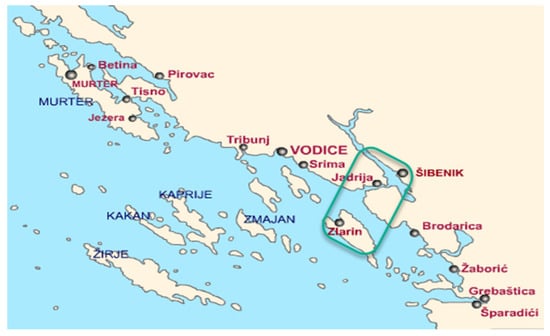 Area of fishing between the town of Šibenik and the island Zlarin (Croatian Adriatic coast).