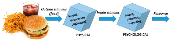 Schematic representation of the two-step model proposed to illustrate the stages in the process between flavour release/flavour perceptions. The outside stimulus is the food as put in the mouth starting physical, chemical and physiological processes. The outside stimulus is transformed into the inside stimulus by these processes. When the flavour molecules reach the receptors (OR), the neural responses are the beginning of the psychological processes. These processes include the evaluation of the strength of the stimulus, comparing it with standards, and finally, making a response. Adapted from Dijksterhuis and Piggott [134].