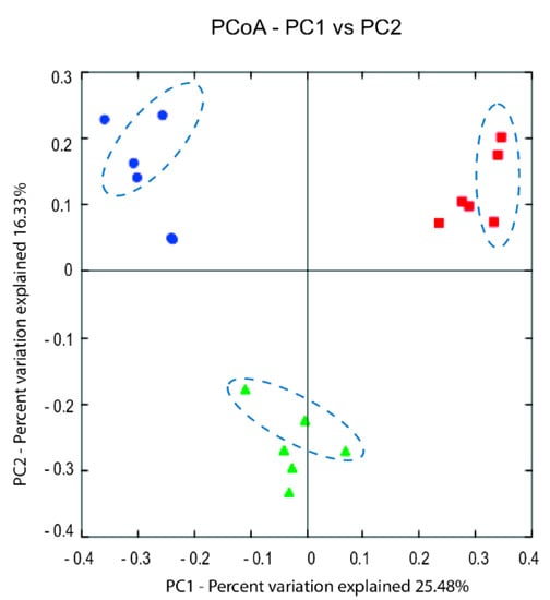 - Vázquez-Baeza, Y.; Pirrung, M.; Gonzalez, A.; Knight, R. EMPeror: A tool for visualizing high-throughput microbial community data. Gigascience 2013, 2, 16. [Google Scholar] [CrossRef]