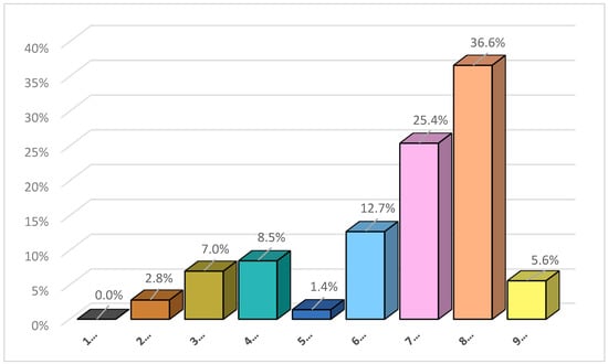 The breadfruit pasta product was tested for acceptability of taste using a hedonic test according to Larmond [37] and Meeilgard [38]. The product was evaluated by 71 untrained panelists. A nine-point verbal category hedonic scale was used: 1, dislike extremely; 5, neither like nor dislike; 9, like extremely. The scale was presented as a line numbered 1–9 with the beginning, middle, and end parameters specified. The pasta was presented without additives. Data obtained from the taste panel were analyzed using the Z test for one proportion.