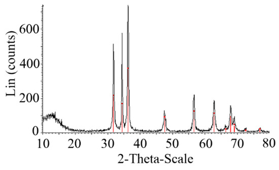 Different analytical techniques were used to visualize and characterize the synthesized ZnO microstars. In order to analyze the size and morphology of the fabricated microstars, transmission electron microscopy (TEM) (Philips, Eindhoven, The Netherlands, CM10, HT 100 KV) was used. The verification of the XG-capped ZnO particles was performed using Fourier transform infrared (FTIR) spectroscopy (PerkinElmer Spectrum One, Waltham, Massachusetts, USA). The analysis was carried out using KBr pellets, and the data were collected for a range of 4000–400 cm−1. X-ray diffraction (XRD) analysis was performed to characterize the synthesized microstars using a Siemens D5000 X-ray powder diffractometer. The data acquisition was carried out for an exploration range (2θ degree) of 10–80°.